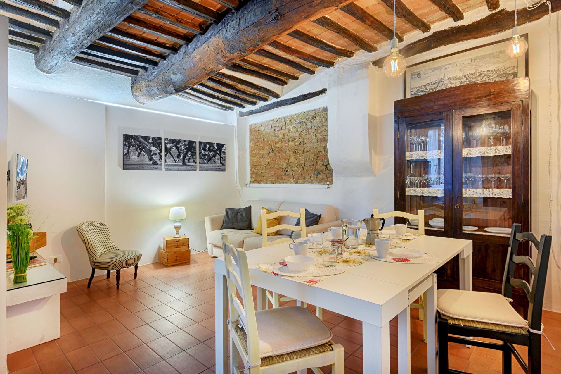 After arriving at The Silent Courtyard Retreat: Spacious 2-Bedroom S you’ll find a beautiful clean well-maintained property ideal for a relaxing vacation in Tuscany. After a busy day of visiting museums, spend some time with friends and family enjoying a glass of wine - a perfect way to relax at the end the day. Dining with friends and family is a big part of the Tuscan culture. Take advantage of the well-equipped kitchen to prepare meals using local produce while on your vacation. The kitchen includes coffee machine, microwave, toaster, stove and refrigerator, as well as, plenty of tableware and cutlery for up to four people.