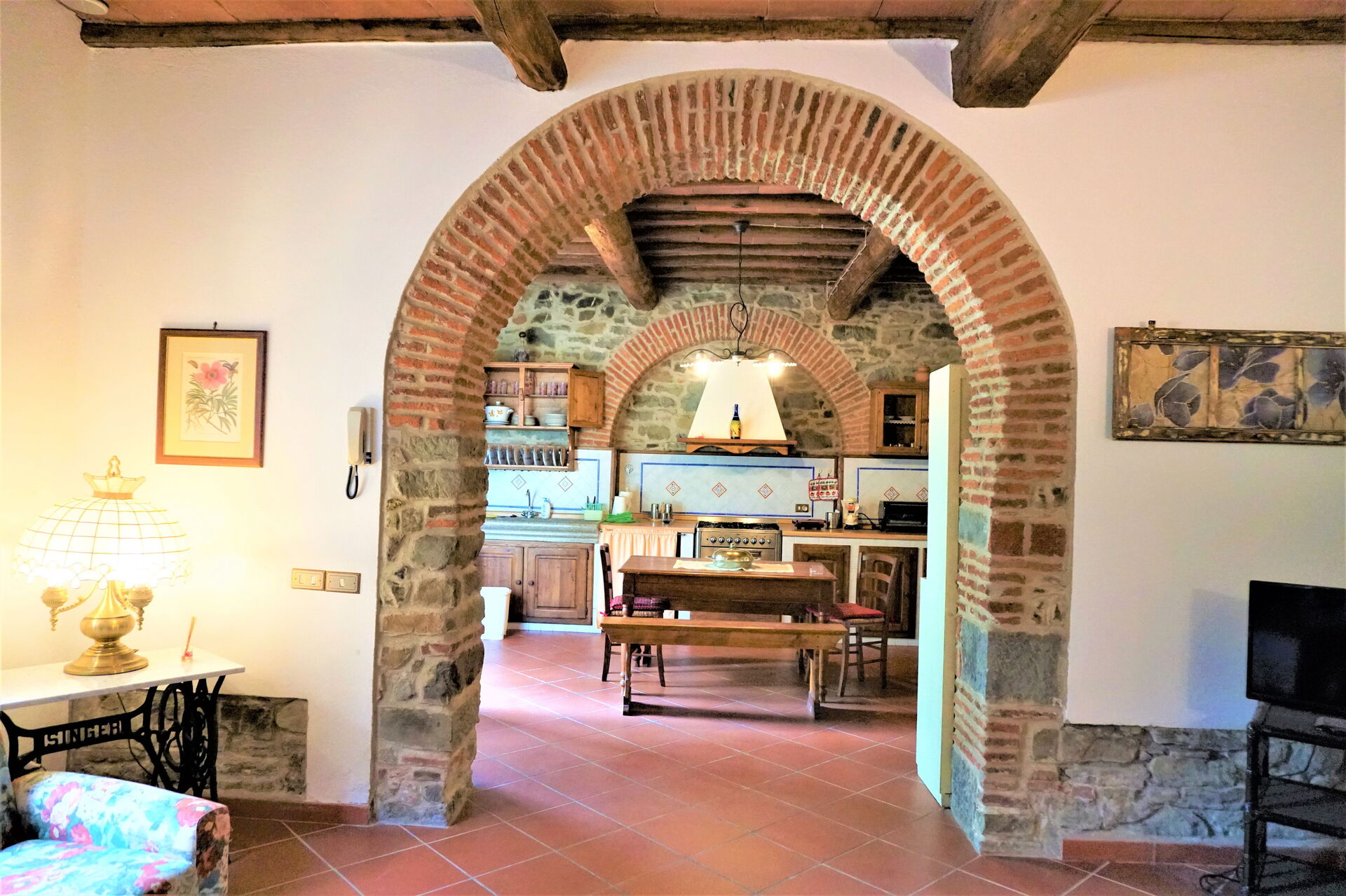If you enjoy cooking for family and friends there is a well-equipped kitchen including microwave, toaster and refrigerator, as well as, plenty of tableware and cutlery for up to four guests. Dine 'al fresco' like a real Tuscan, the fully furnished veranda is the perfect setting to enjoy food, family and the lovely Tuscan weather.