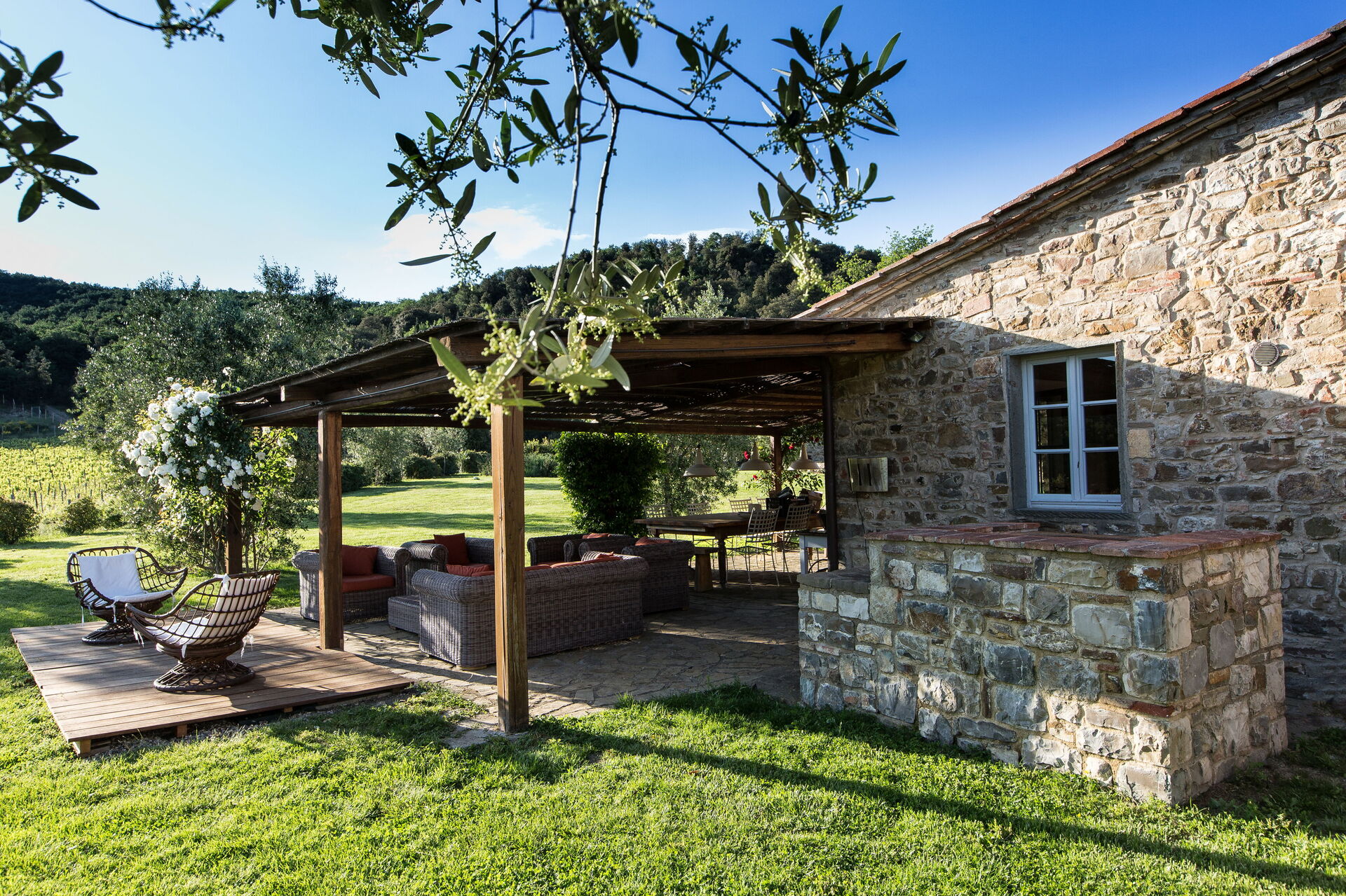 Il Prato Vignamaggio Private Pool, Nature, Greve I is located 5 km (3 mi) from Greve In Chianti, Italy and only 37 km (23 mi) from Florence in the tourist area "Chianti". Il Prato Vignamaggio Private Pool, Nature, Greve I is a lovely holiday rental (549 sq m) with WiFi internet, private pool and air conditioning. The property can sleep up to 22 guests comfortably in 11 bedrooms with 11 bathrooms.