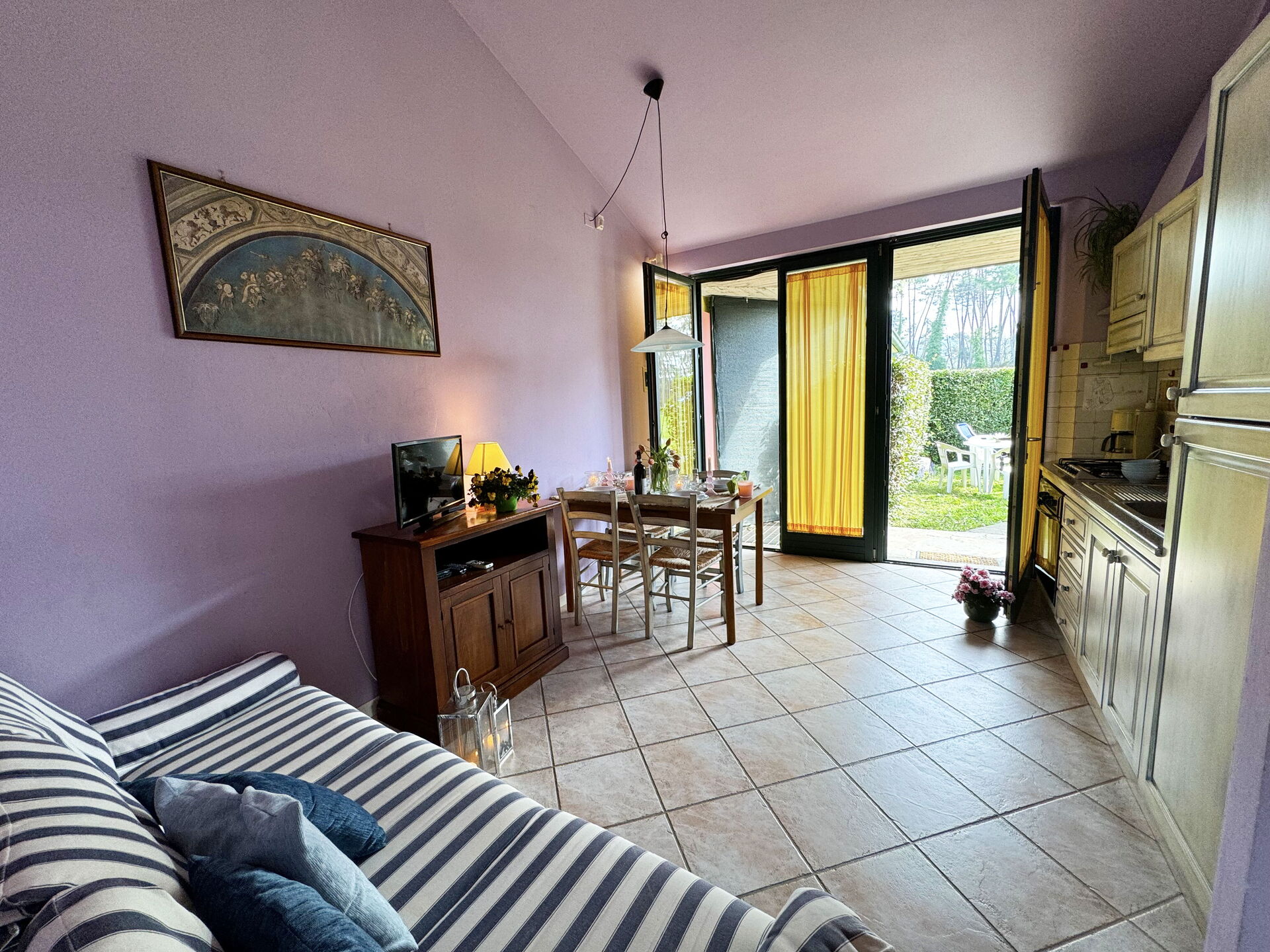 Kitchen + living room: dining table (people: 2), fridge, freezer, stove top, oven, american coffee machine, sofa (people: 2), WIFI internet, mosquito net, highchair, satellite tv, smoke detector, co2 detector, exit to the garden.