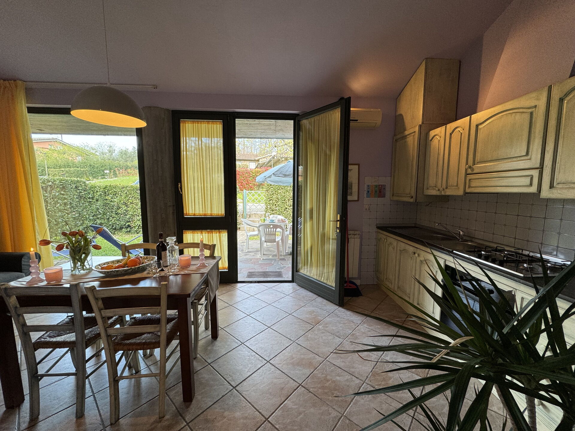 Kitchen + living room: dining table (people: 4), fridge, freezer, stove top, oven, american coffee machine, sofa (people: 2), WIFI internet, mosquito net, highchair, satellite tv, smoke detector, co2 detector, exit to the garden.