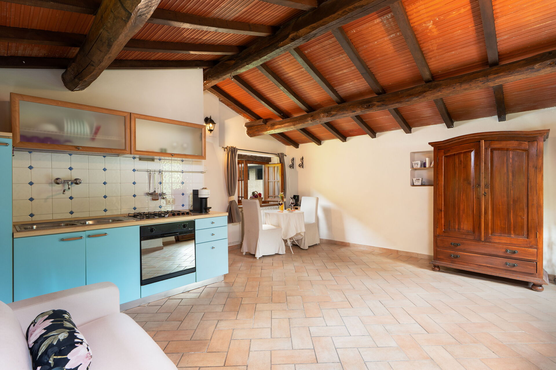 Open space: dining table (people: 2), sofa bed double, WIFI internet, satellite tv, fridge, stove top, freezer, well equipped kitchen, oven, italian coffee machine, exit to the garden.