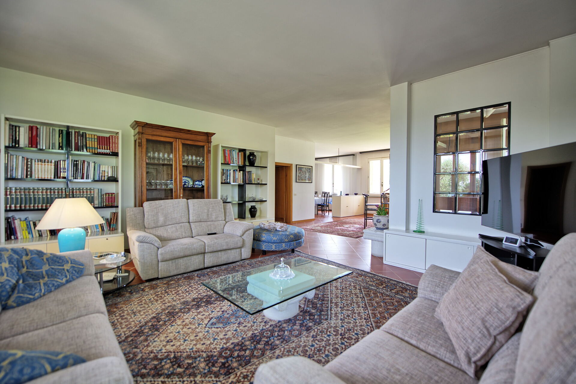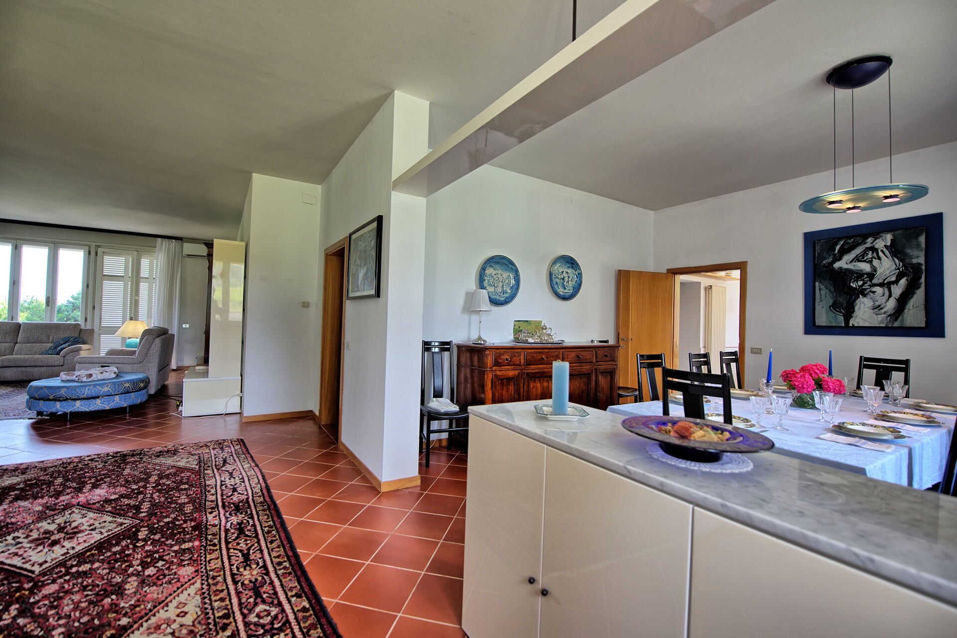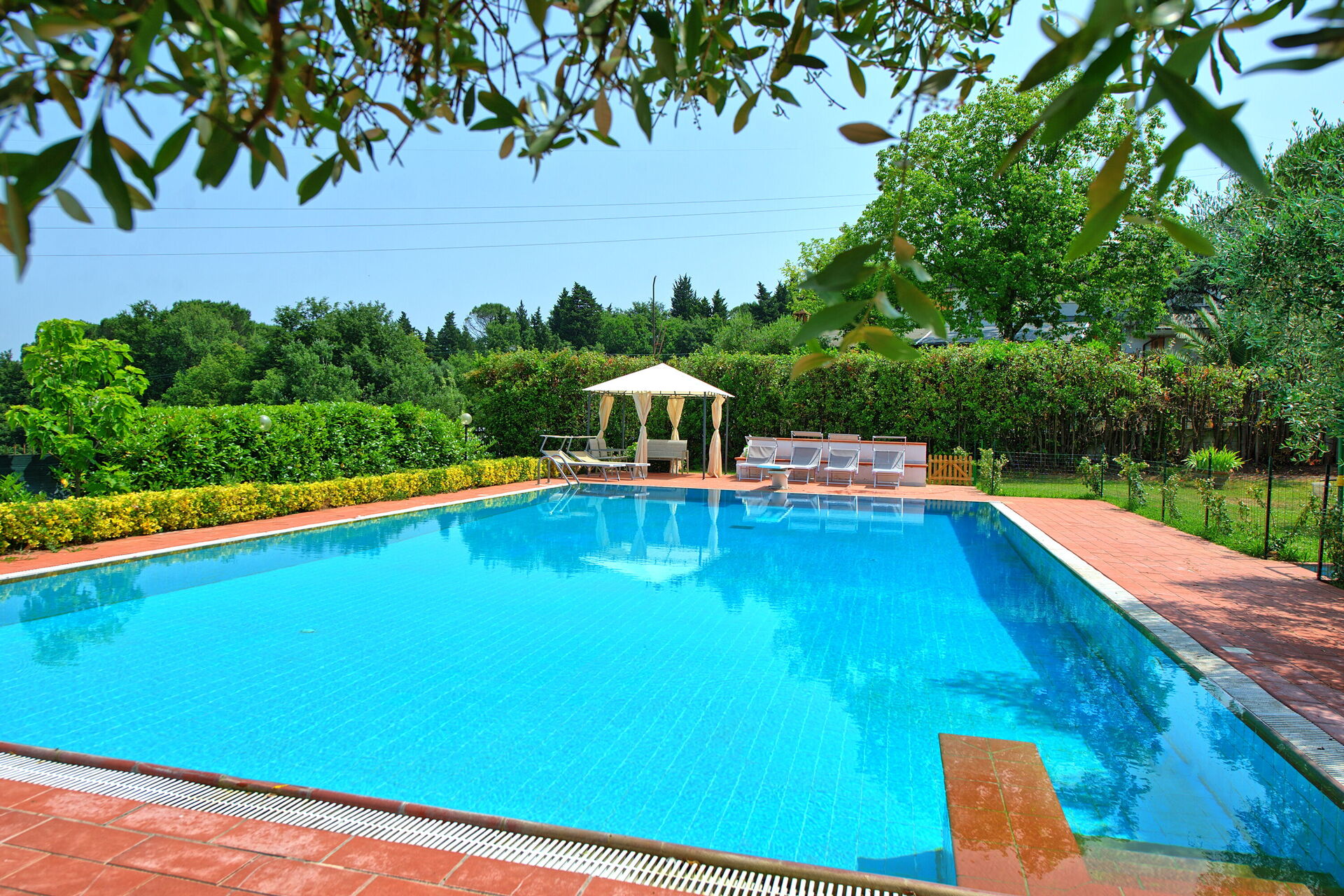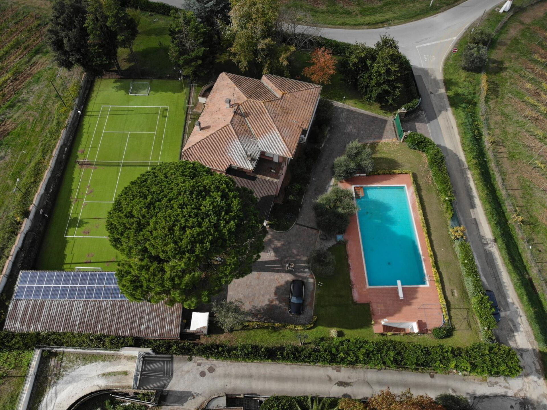 At guests’ disposal:4 bedrooms, 2 bathrooms; sleeps 8; private pool with panoramic views (15 x 7,5 meters; minimum depth: 1,50 meters; maximum depth: 3 meters); outdoor shower; changing room with showers next to the pool area; multi-use court for tennis and five-a-side soccer with night lighting; veranda with outdoor dining area; sunbathing area; private garden; barbecue; parking; stationary bike; Wifi internet; air conditioning in 2 bedrooms and the living room