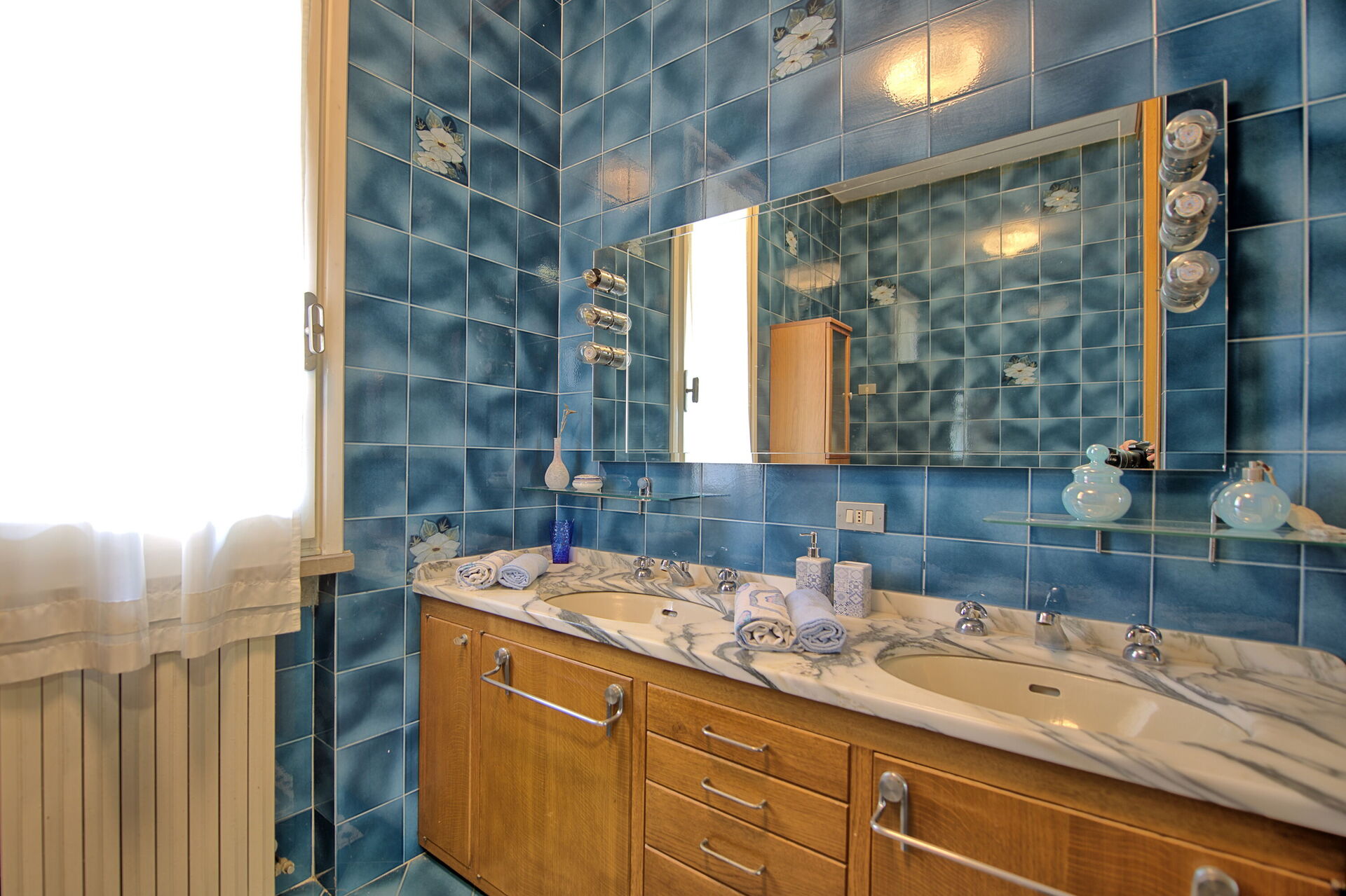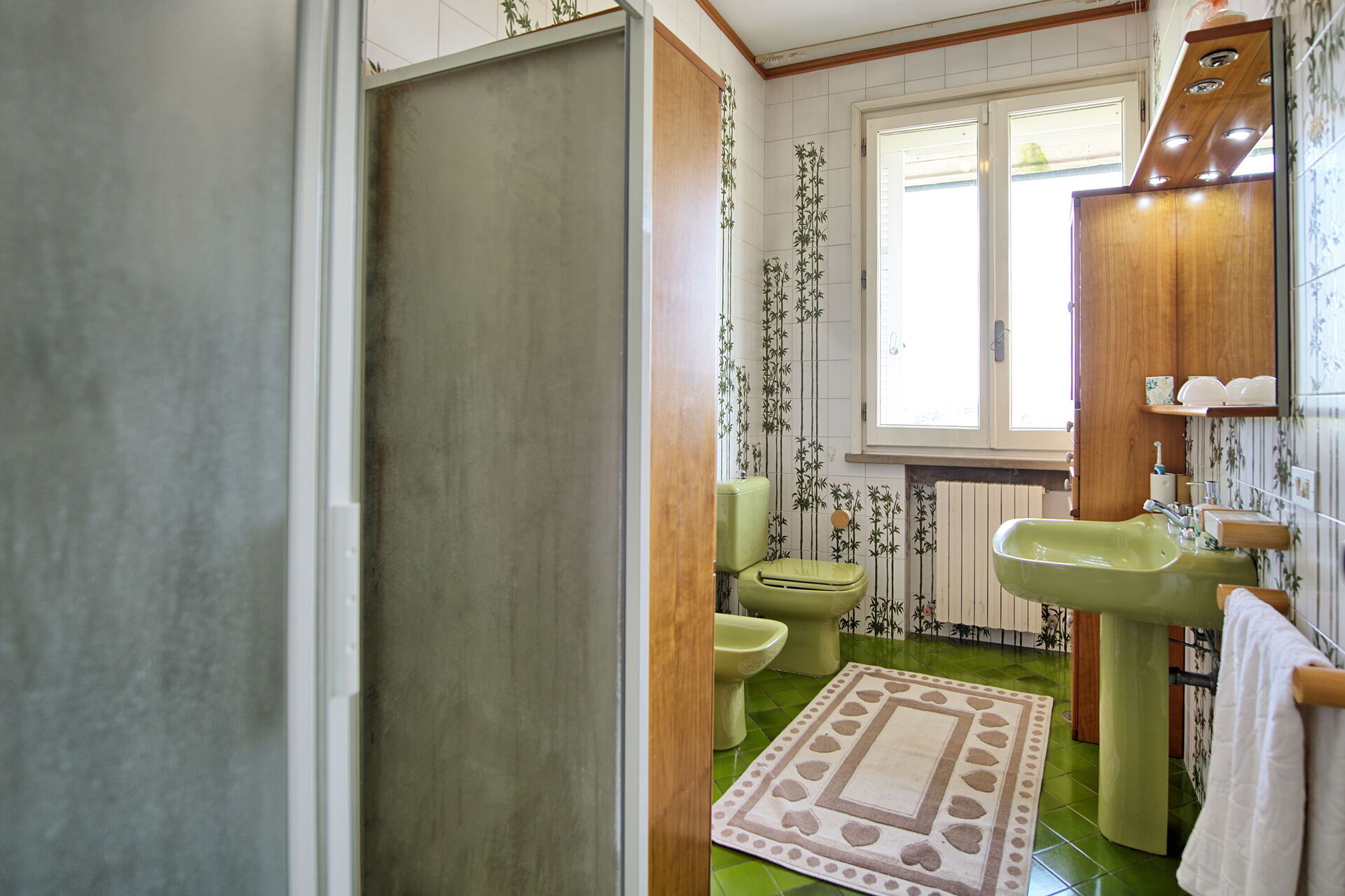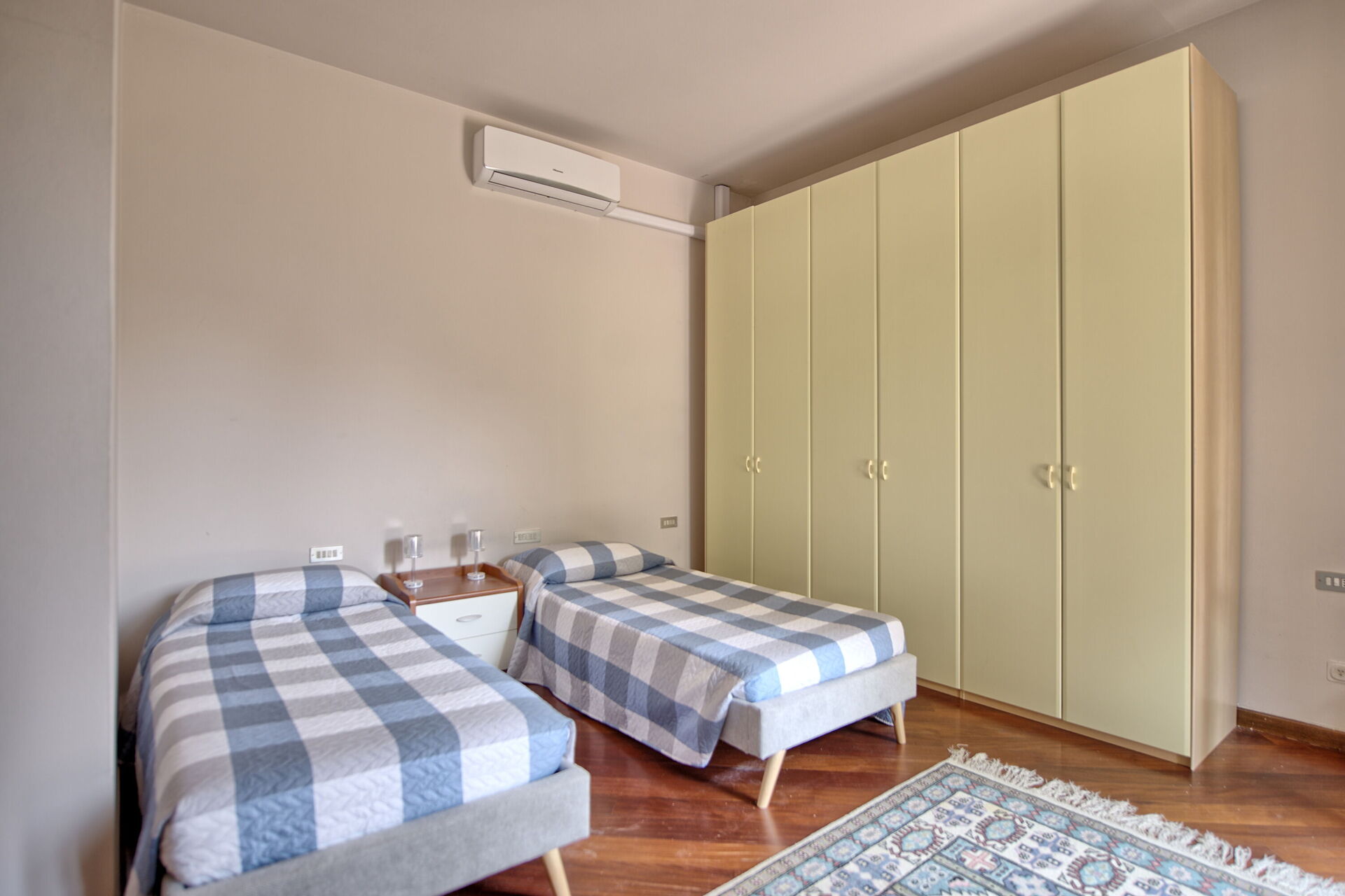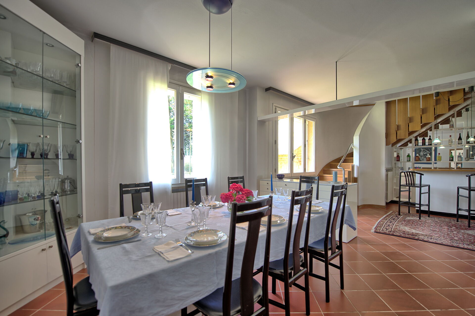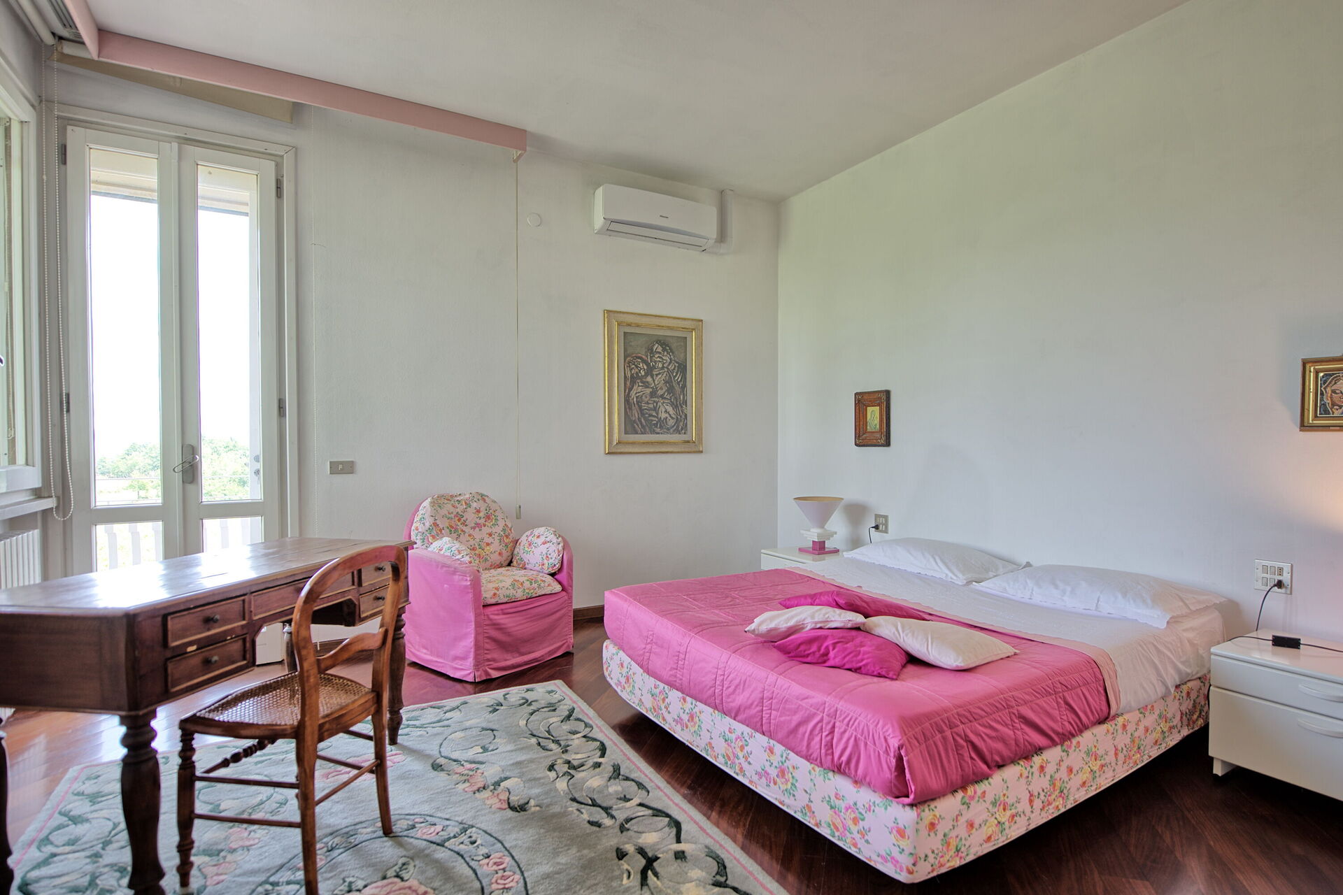 At guests’ disposal:4 bedrooms, 2 bathrooms; sleeps 8; private pool with panoramic views (15 x 7,5 meters; minimum depth: 1,50 meters; maximum depth: 3 meters); outdoor shower; changing room with showers next to the pool area; multi-use court for tennis and five-a-side soccer with night lighting; veranda with outdoor dining area; sunbathing area; private garden; barbecue; parking; stationary bike; Wifi internet; air conditioning in 2 bedrooms and the living room