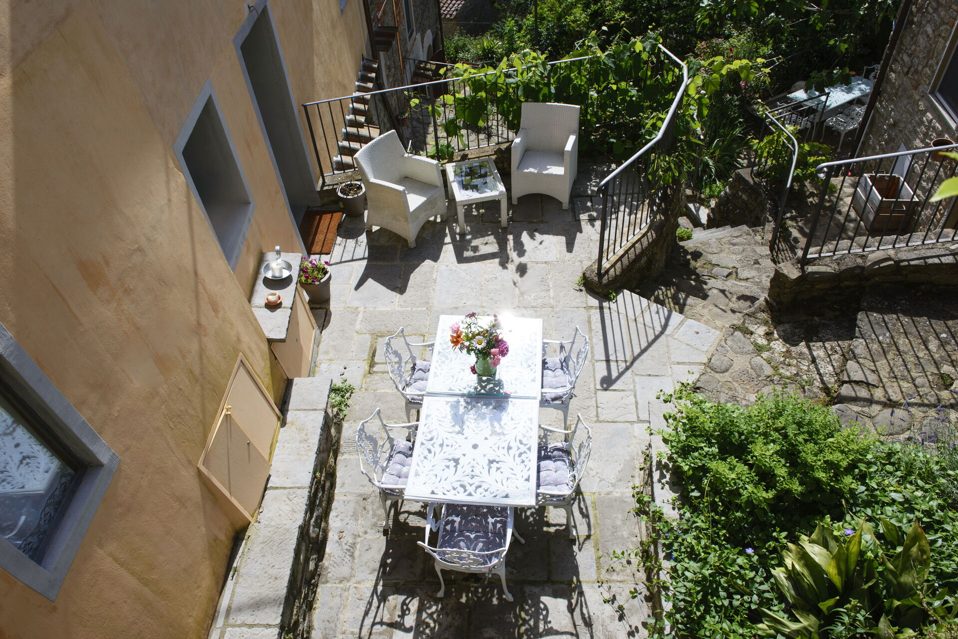 Small garden with table and chairs.