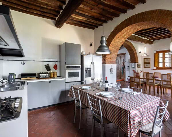When you arrive you will be greeted by the owner or manager where you’ll find a nice clean well-maintained property with views of the hills perfect for a relaxing vacation in Tuscany. For your pleasure you will find a private garden where you can relax while enjoying a nice cold beverage after a busy day of visiting museums. A real benefit of renting a home, instead of multiple hotel rooms, is the ability to relax after a busy day of sightseeing with family and friends. Enjoy a meal together along with some local wine to finish the day. If you enjoy cooking for family and friends there is a well-equipped kitchen including coffee machine, microwave, toaster, stove and refrigerator, as well as, plenty of tableware and cutlery for up to eight people.