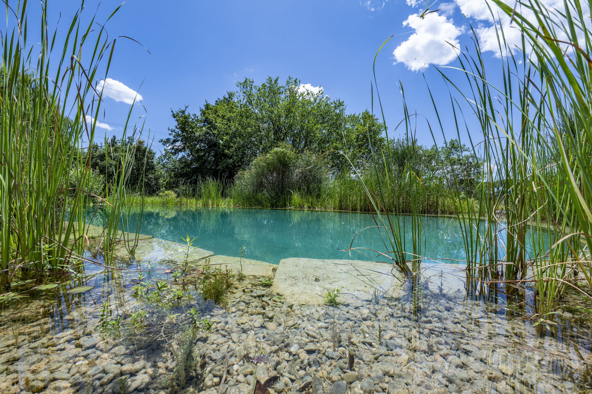 The garden also houses an exclusive eco-pool, available to guests. Inspired by the self-purification mechanisms of natural lakes, unlike traditional swimming pools, it does not use chlorine or other chemical agents for water purification, but uses a biological system based on aquatic plants and microorganisms.