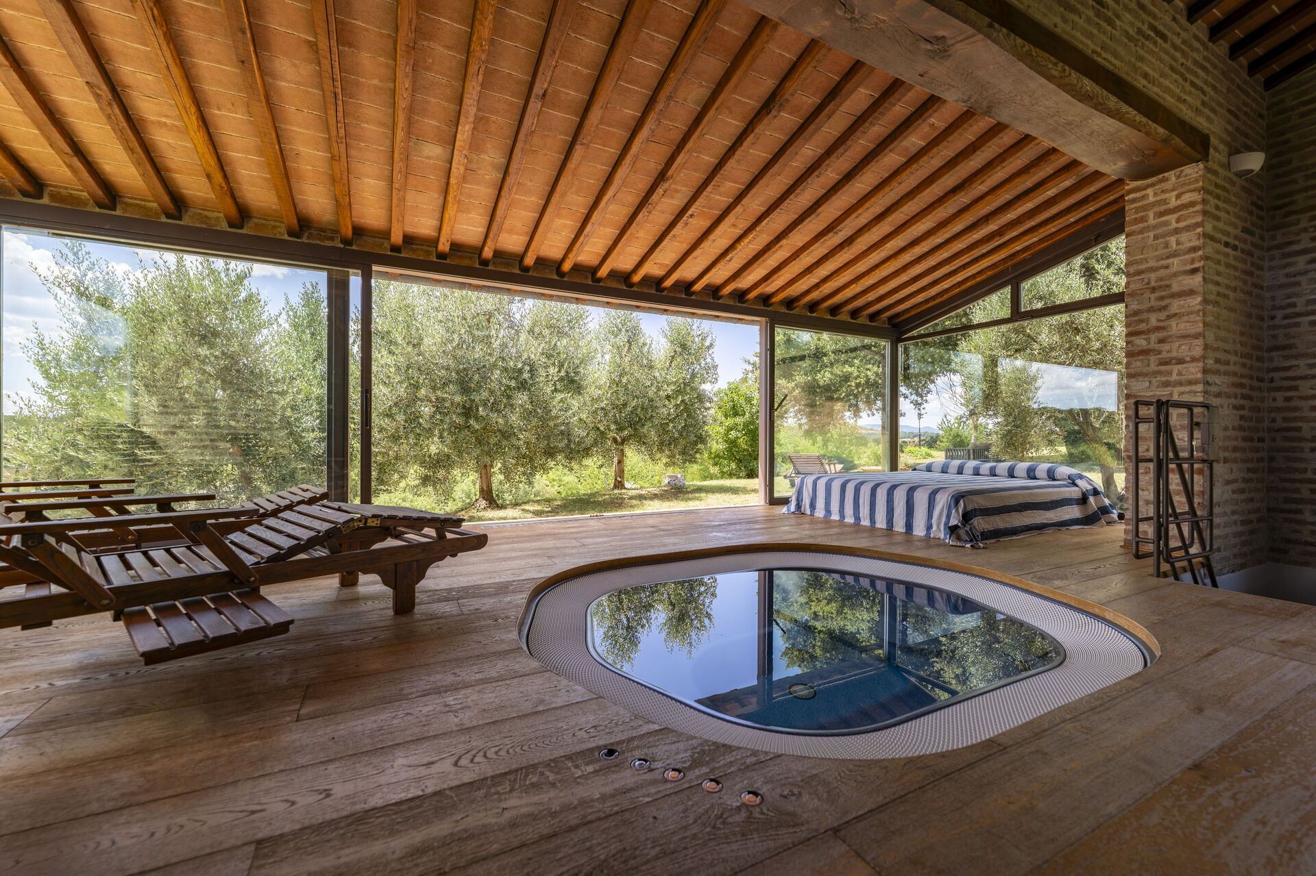 Aqua Bio Retreat is a lovely holiday rental (350 sq m) with private pool and air conditioning. The property can sleep up to nine people comfortably in five bedrooms with three bathrooms. Conveniently located in Castiglione Del Lago, Italy in the tourist area "Trasimeno Lake" and only 21 km (13 mi) from Cortona.