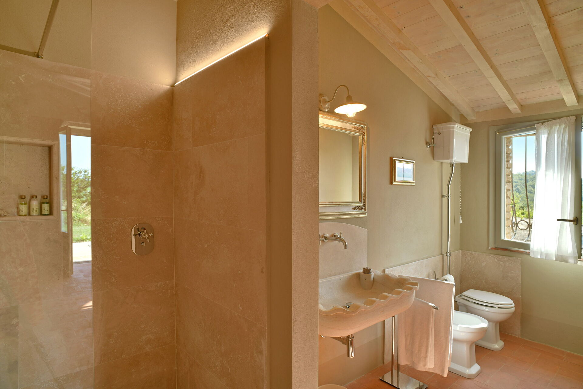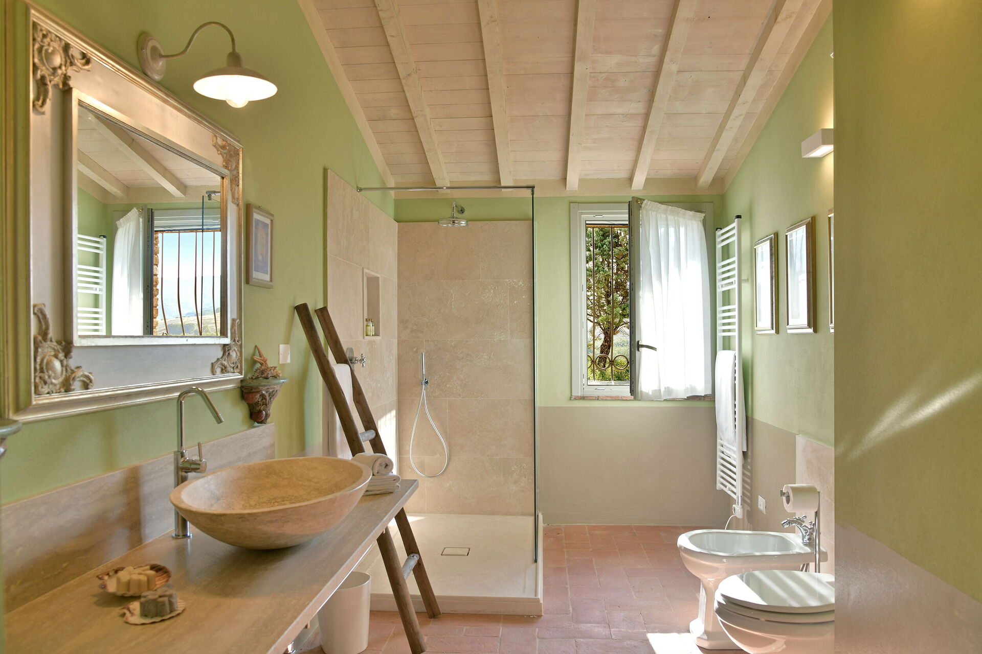 Bedroom + Ensuite Bathroom 2: double bed, WIFI internet, basin, toilet, bidet, shower.