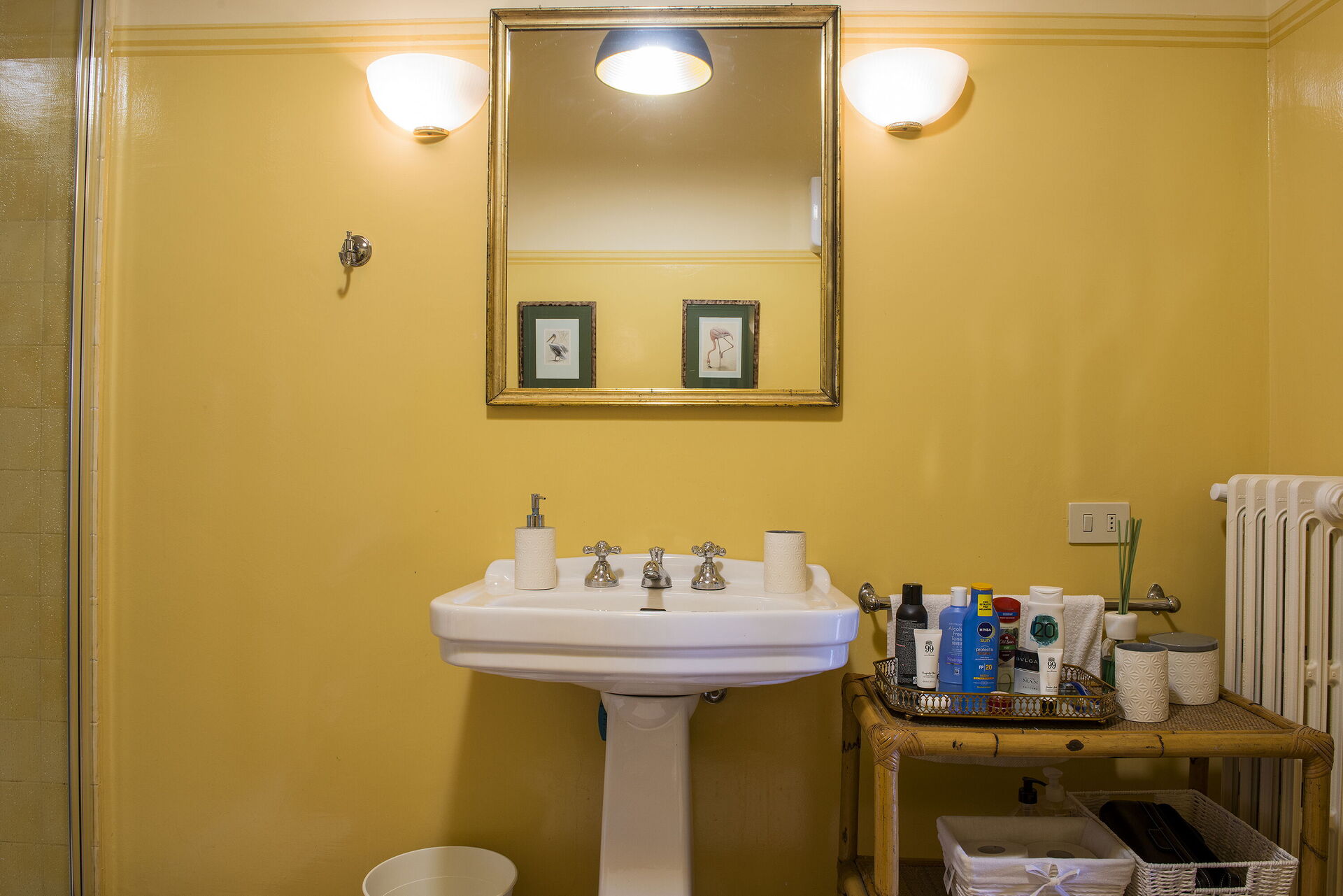 Bathroom 1: basin, toilet, bidet, shower, hairdryer.