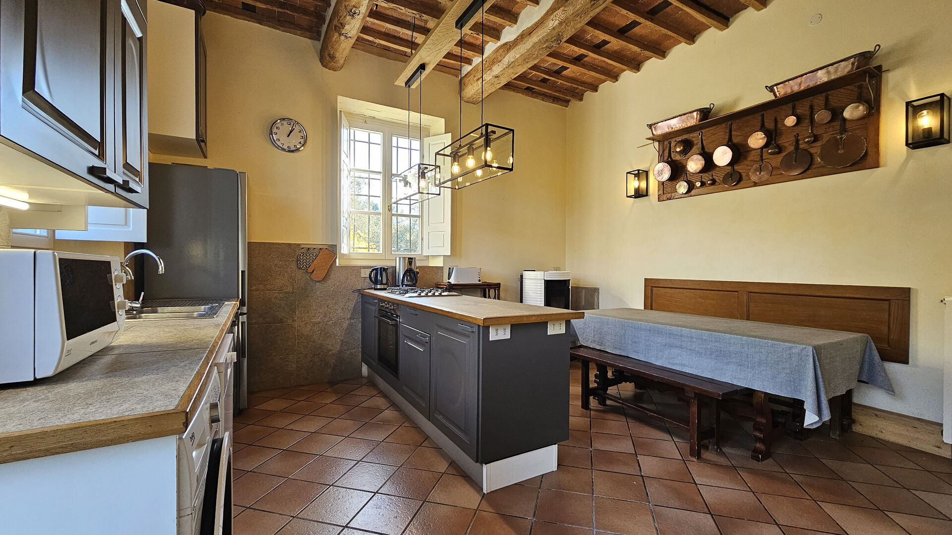 After arriving at Villa Il Torrazzo, Vista Mare, Massarosa you’ll find a lovely clean well-maintained property with views of the sea and the hills perfect for a peaceful vacation in Tuscany. After a busy day of sightseeing, spend some time with friends and family poolside enjoying a glass of wine - a perfect way to relax at the end the day. Dining with friends and family is a huge part of the Tuscan culture. Take advantage of the well-equipped kitchen to prepare meals using local produce while on your vacation. The kitchen includes coffee machine, microwave, toaster, stove and refrigerator, as well as, plenty of tableware and cutlery for up to 12 people.