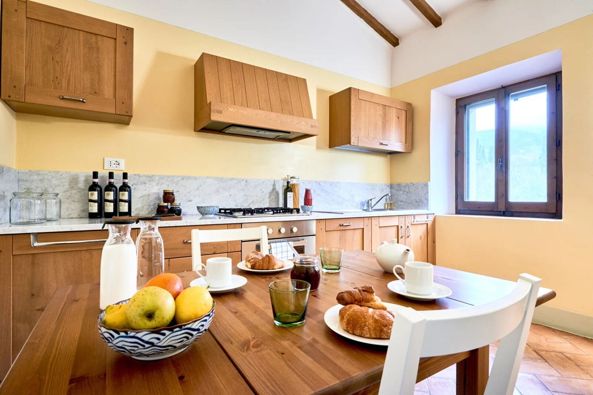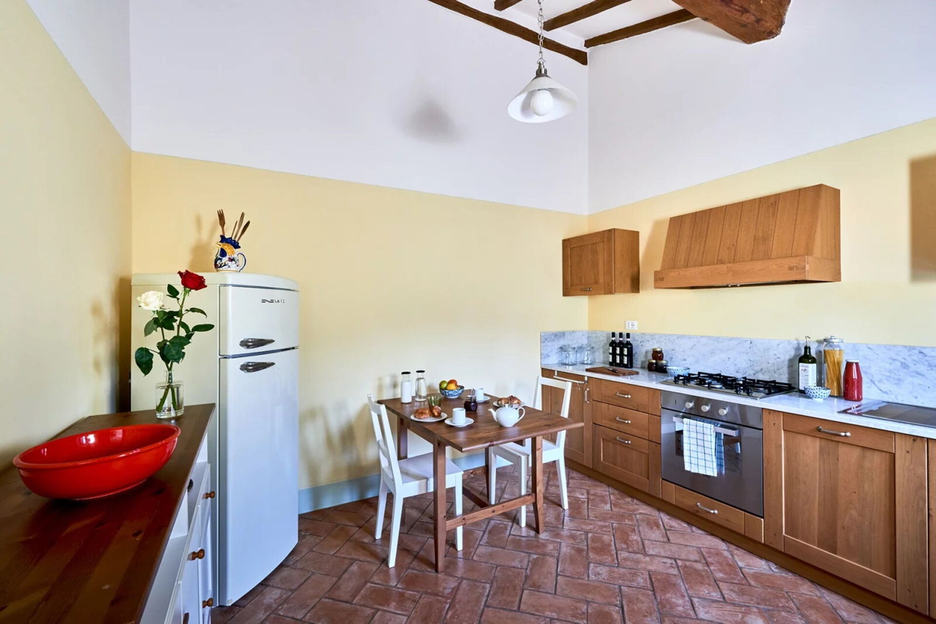 Podere i Prati offers 4 bedrooms and large common areas to comfortably accommodate up to 8 people. It is the ideal place to bring together a large family or group of friends. The tastefully furnished interiors are equipped with all amenities for relaxation and peace of mind.