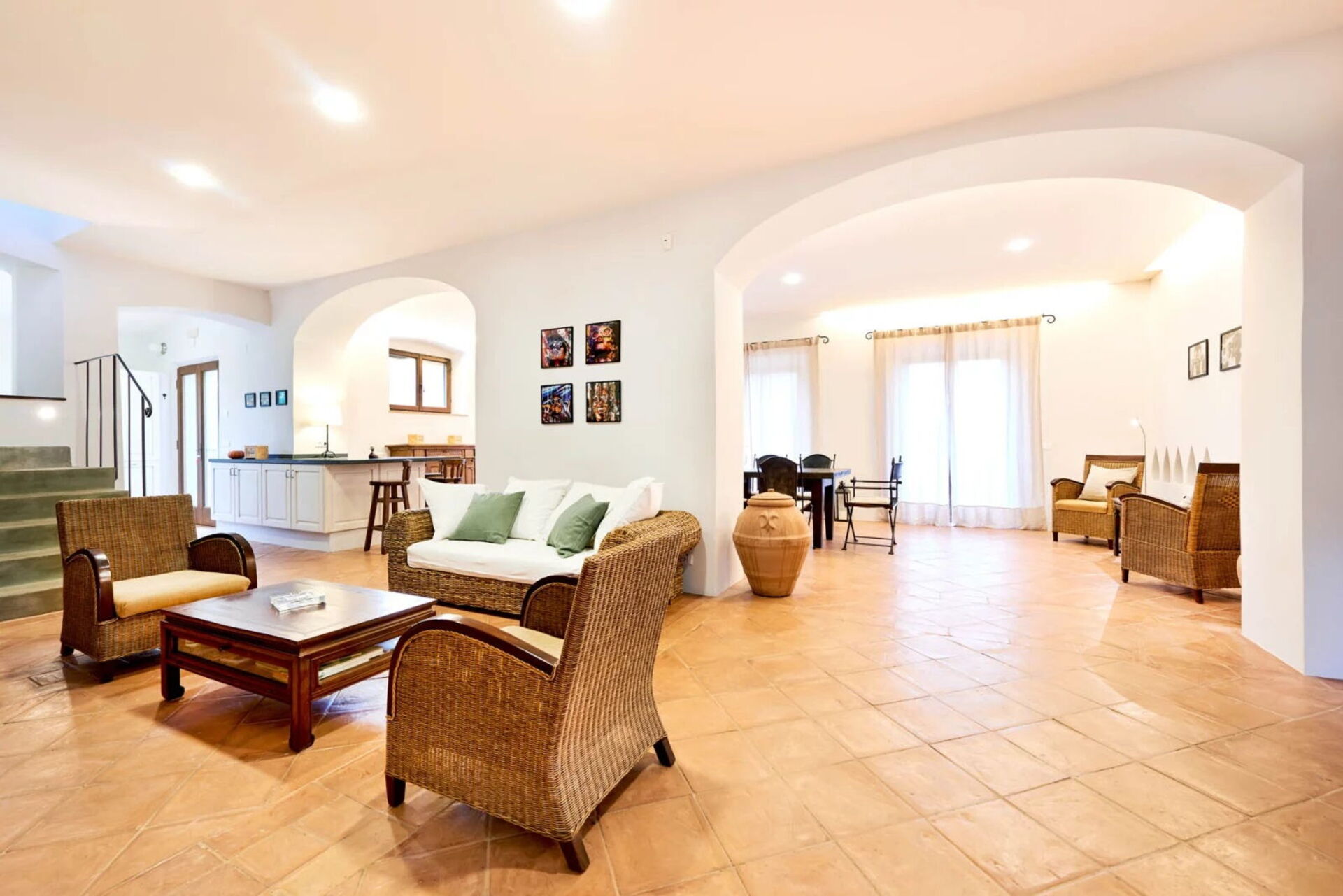 Ground floor: large living room with dining area and access to the terrace with outdoor dining area and panoramic views, kitchen (cook top, oven, refrigerator, freezer, dishwasher, toaster, espresso coffee maker), wc, laundry room with washing machine and dryer.