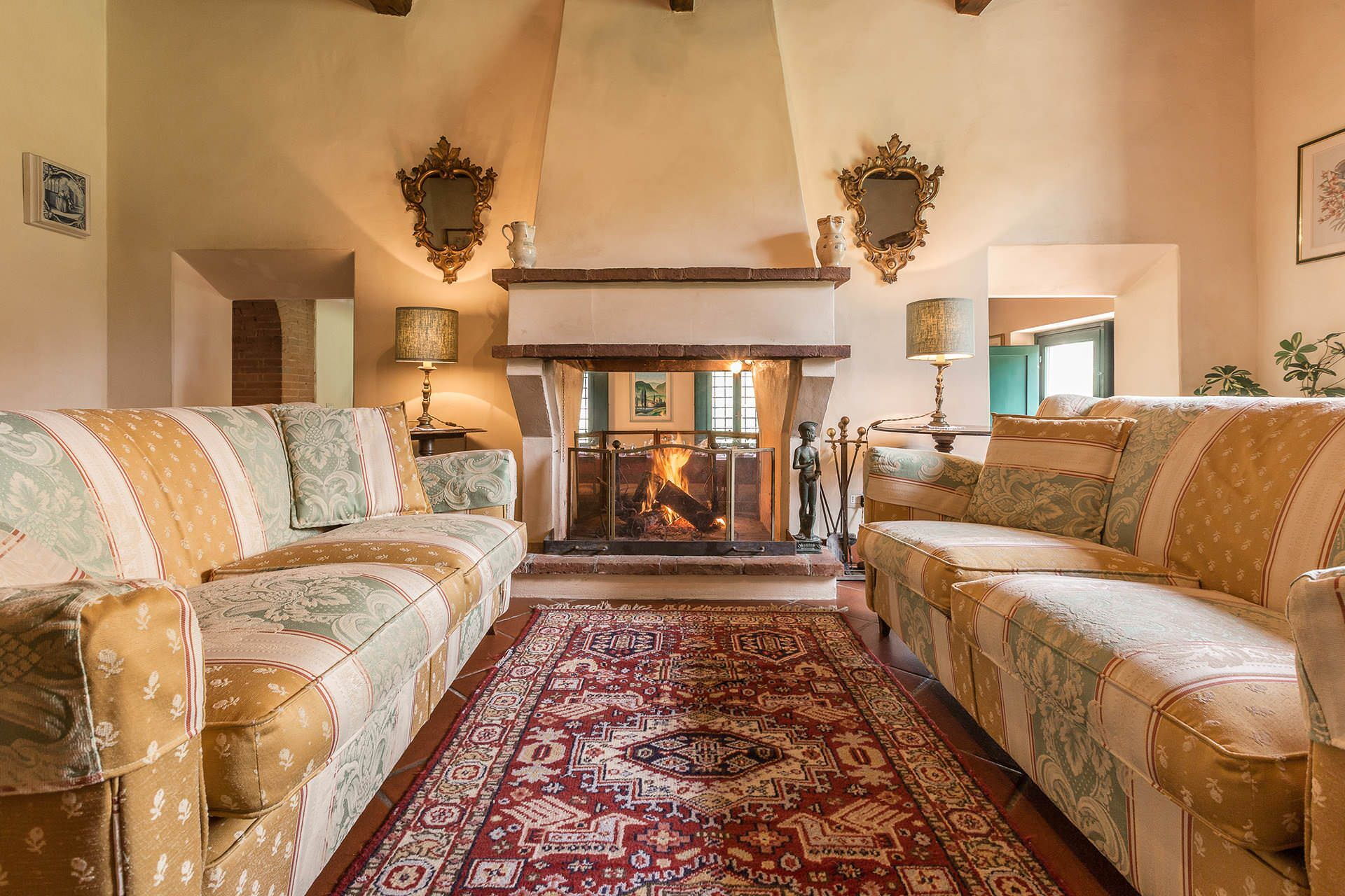 Villa Il Castagno is a spacious luxury property accommodating up to 19 guests across 7 bedrooms and 9 bathrooms, elegantly blending antique-style furnishings with modern comforts. The villa features a refined interior adorned with period furniture, paintings, and carpets, creating an atmosphere of timeless sophistication throughout its multiple floors.