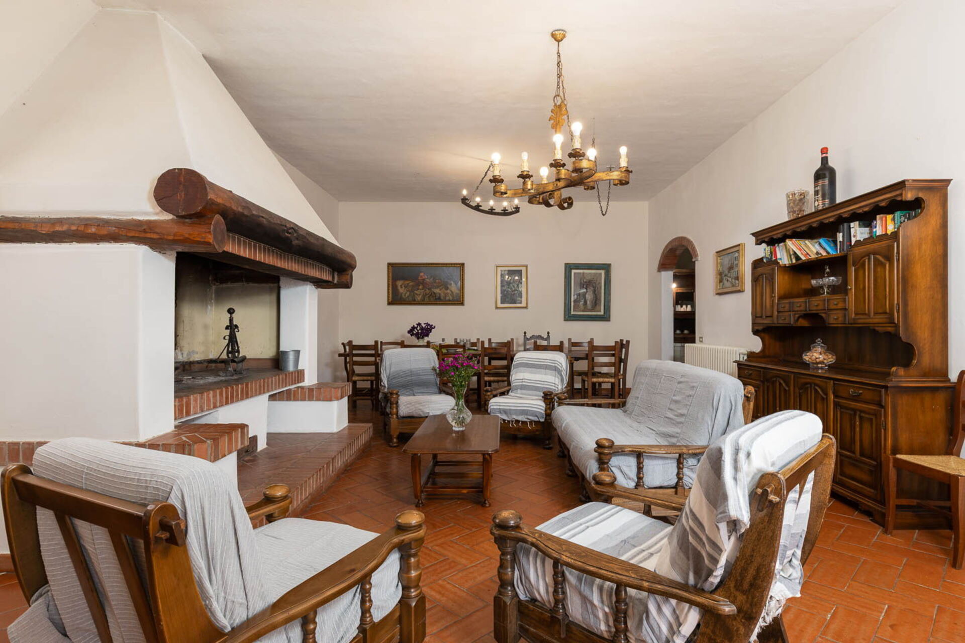 Living room: sofa, armchair, fireplace, dining table, WIFI internet, internet, satellite tv, exit to the patio, exit to the terrace.