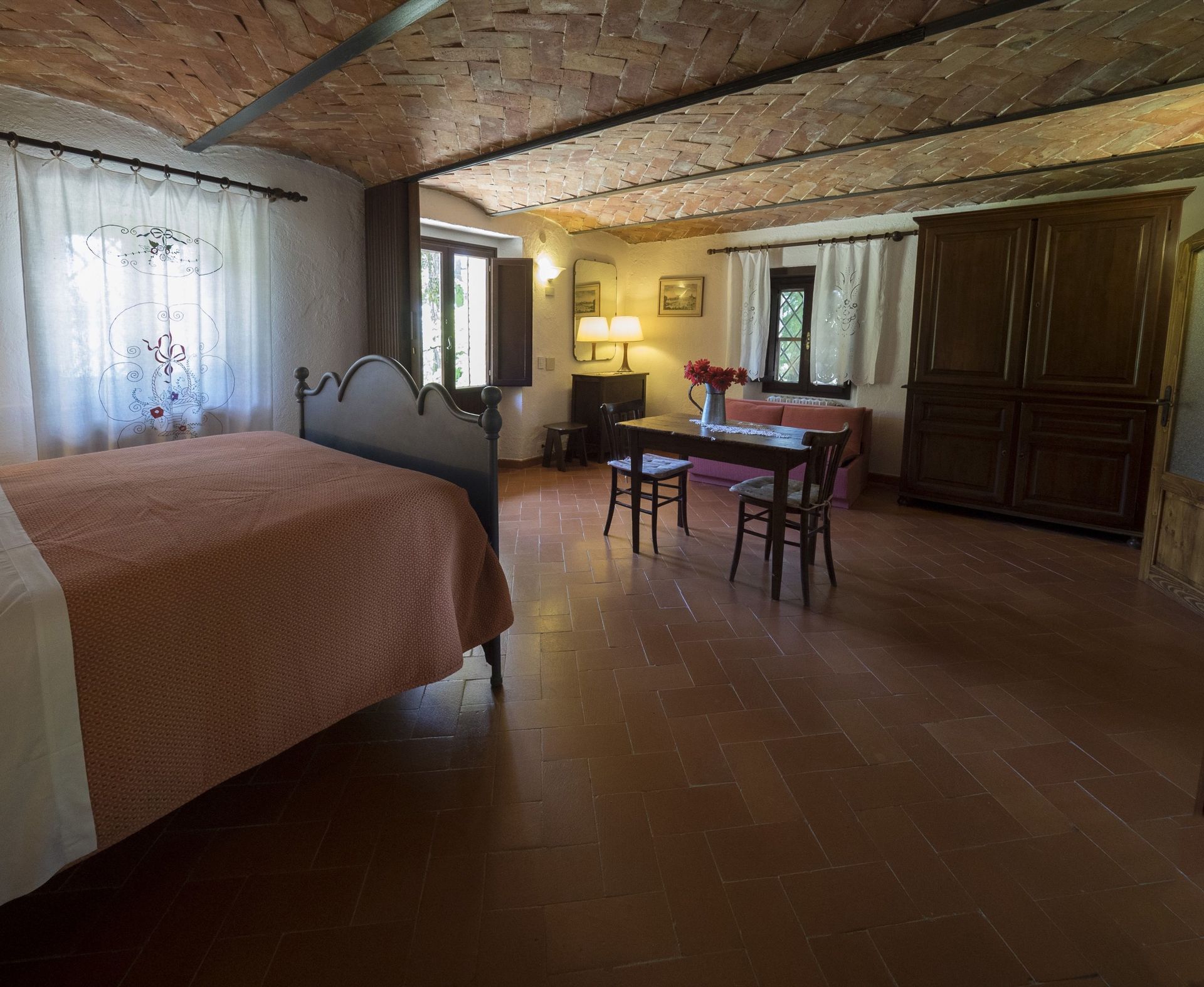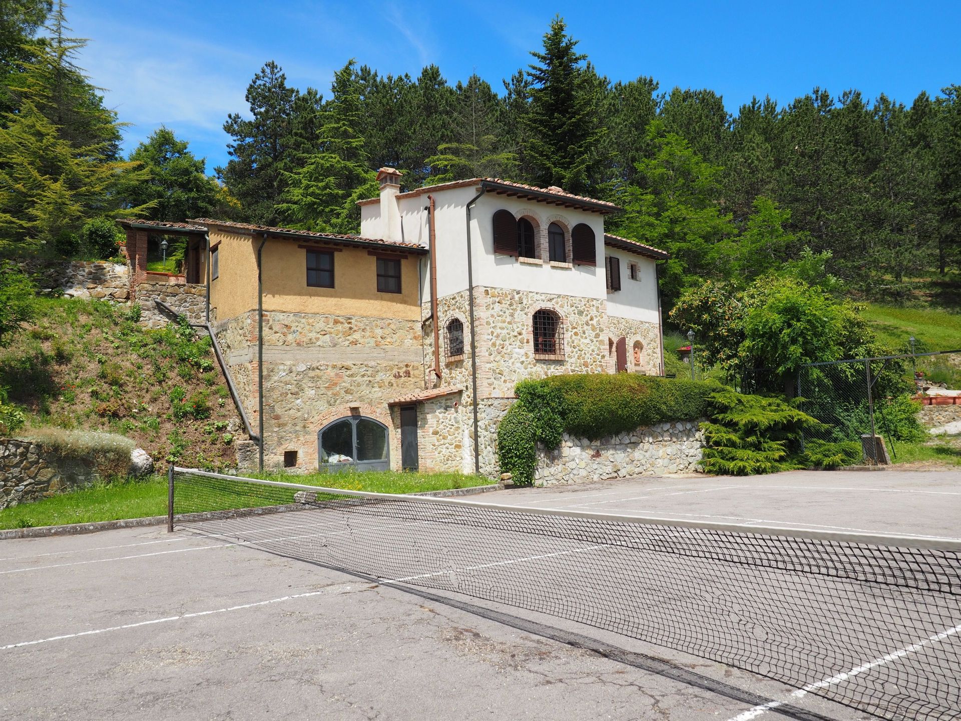 At guests’ disposal: large furnished outdoor areas, swimming-pool (14 x 7 m – maximum depth 2 m – open from 01/05 to 30/09) offering splendid views of the Tuscan hills, tennis court, bowling green, private furnished garden for each apartment. Parking within the grounds. The woods surrounding the property offers an ideal terrain for beautiful walks.
