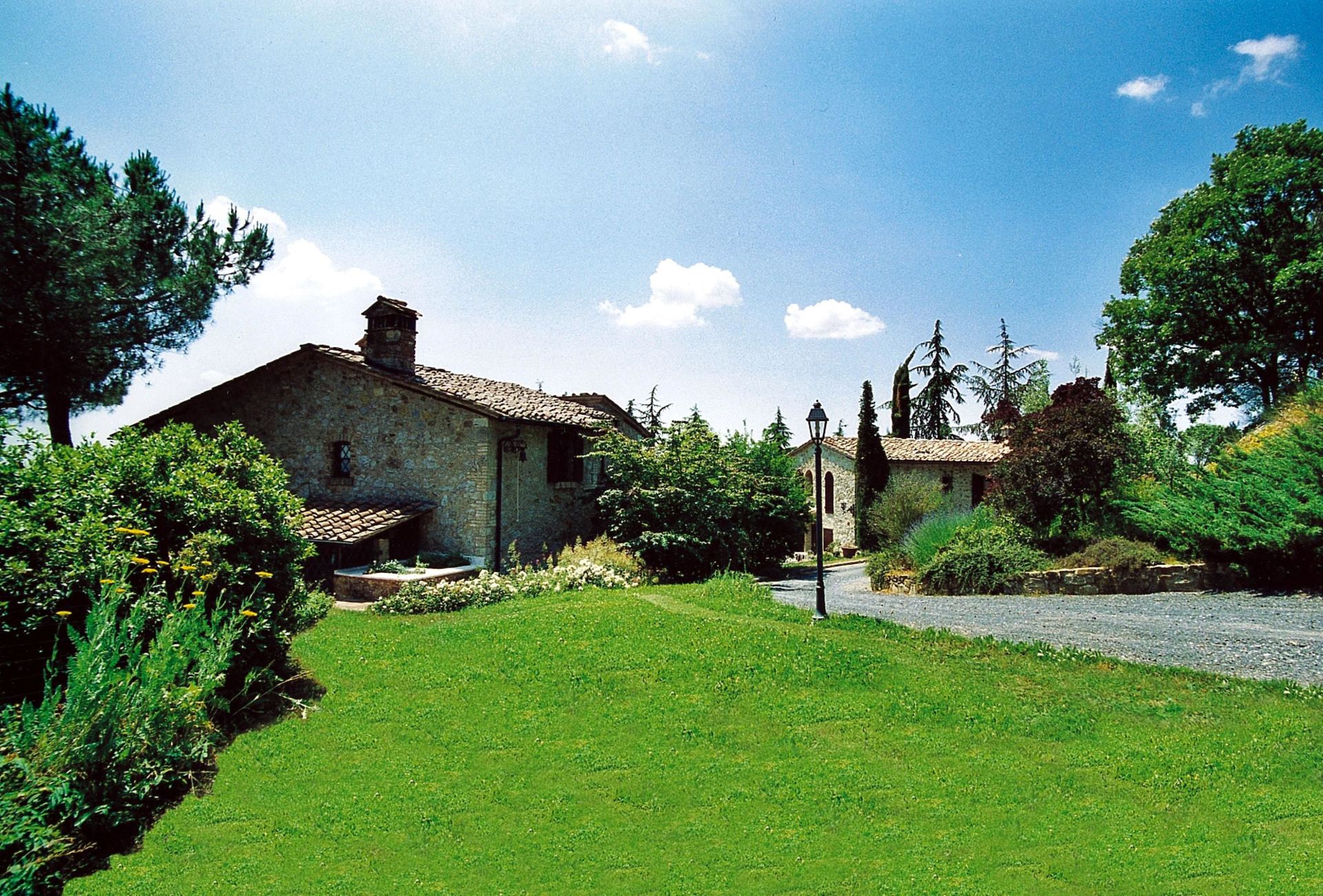 Apartment or farmhouse with pool swimming in Tuscany. Beautiful 40-hectare estate wonderfully situated on the hills of San Gimignano, in Tuscany, surrounded by woods, olive groves and vineyards. The property comprises 4 independent farmhouses dating back to the 16th century, all of which have been estored and turned into cozy apartments offering interiors furnished with antiques, terracotta-tiled floors and beamed ceilings. The property is an ideal destination for those who wish to enjoy tranquillity and privacy in Tuscany.