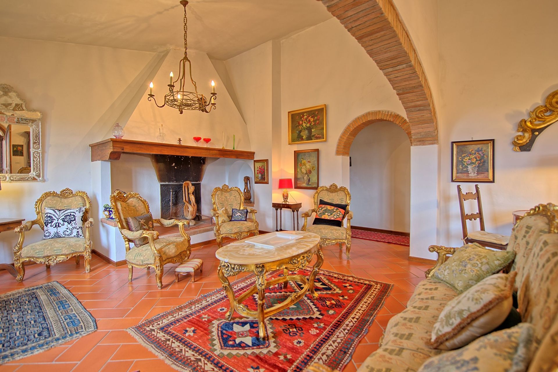 Beautiful brick villa situated in quiet and panoramic location amidst the green hills of the Chianti region with enchanting views over the surrounding vineyards and olive groves. This property has been skilfully restored with all its original architectural features preserved and turned into a charming country house providing all modern comforts. The house is tastefully furnished with antiques and ancient carpets.