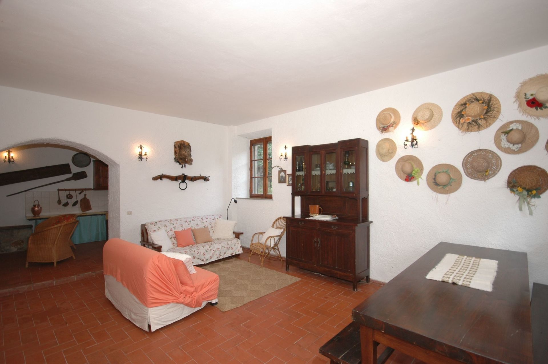 Large and beautiful farmhouse (220m2) located in a small wooded valley, in absolute tranquility and isolation. The house is located at the heart of 50 hectares of olive and cork trees, inside the Val di Farma Natural Reserve. Here it is easy to come across blackbirds, deer, wild boar and with a little luck, otters and foxes. Just 550m away from the house runs the the Farma river, where you can fish and swim in the various natural pools. View of the garden and the woods. The property’s location is ideal for a vacation in close contact with nature. The house offers a large, well-furnished and well-maintained lawn (5000 m2) that is enclosed and partly shaded. Outside there is also a beautiful, illuminated pool with outdoor shower, and a portico/porch/patio with a large table, chairs and old-fashioned wood-burning oven, perfect for dining al fresco. The furnishing is simple but comprehensive, in rustic style and in perfect harmony overall (the bathrooms are simple). Access to the property is via an unpaved, 2,4 km road that is not recommended for low-riding cars.