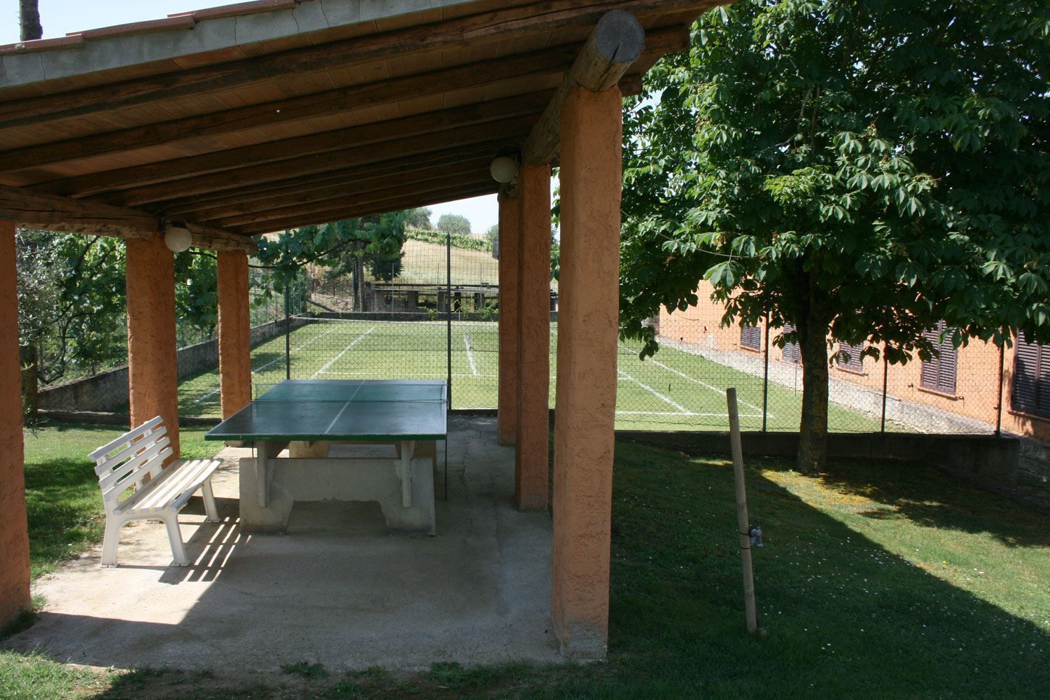 At full guest's disposal the swimming pool (dim. 6x12 m, depth m. 0,90-2,30), the tennis court (grass), the table tennis, a play area for children, and the bicycles (free use).