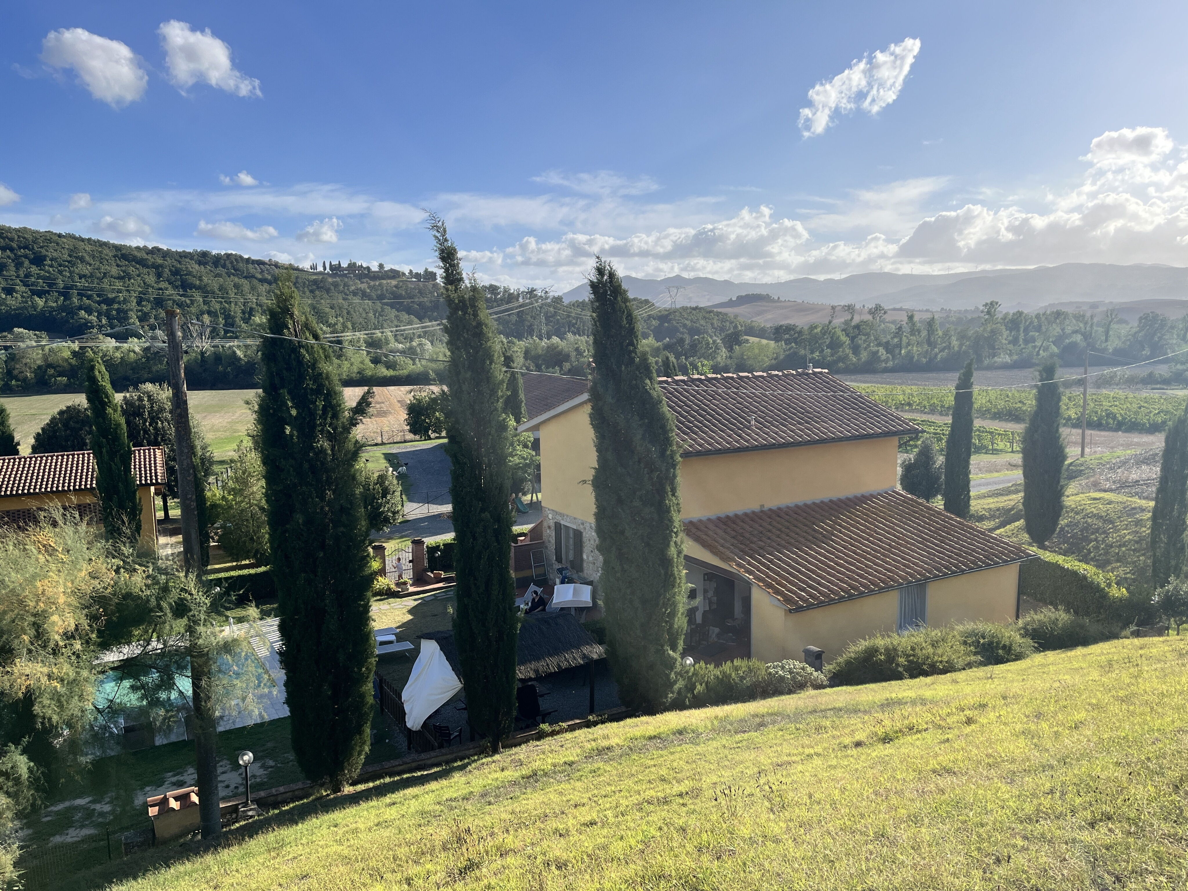 You will find the farmhouse in the tranquillity of the beautiful hills of the Alta Val di Cecina, with a beautiful view of endless, ever-changing natural landscapes. Soft green hills, expanses of golden cultivated fields and endless blue skies, all of which you can enjoy from the garden and your swimming pool. The perfect place, in our opinion, for an unforgettable holiday.