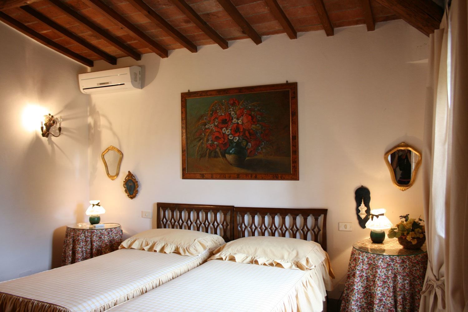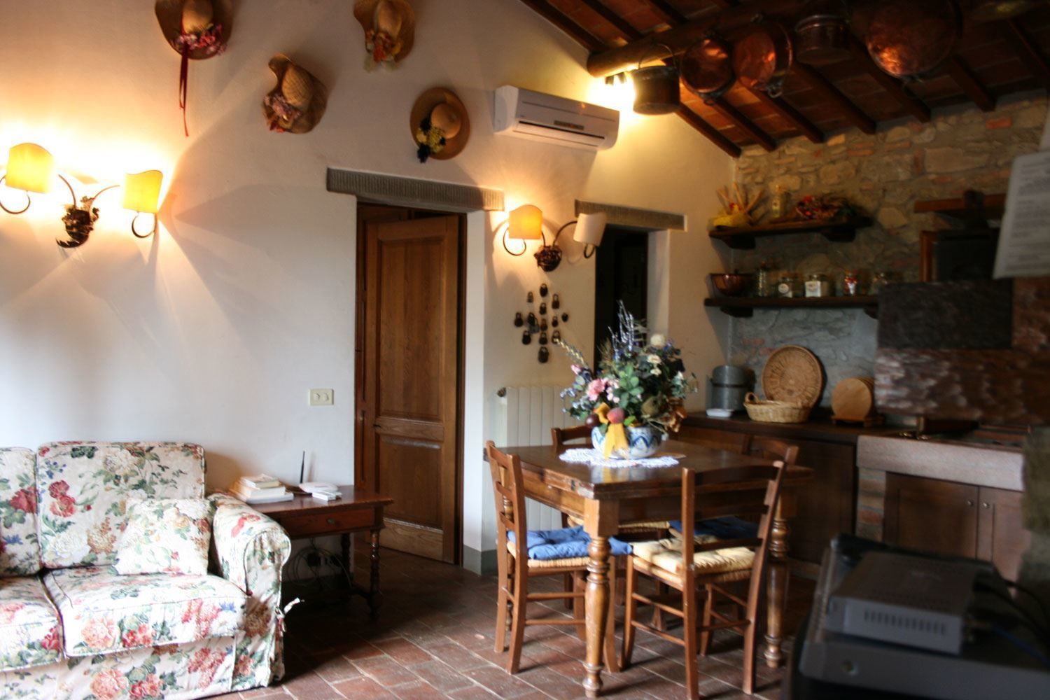 The farmhouses inside the Agricultural Farm. A few km far from Cortona, in the rich and fertile Valdichiana, which like an unfenced flower garden changes colour with the seasons there is the Azienda Agrituristica Il Barattino. This large farm is full of fruit trees, olive groves and vineyards and offers hospitality in two beautiful stone farmhouses in typical Tuscan rural style. The houses are tastefully furnished, their terracotta, wood and stone interiors keep the taste of the old peasant life.