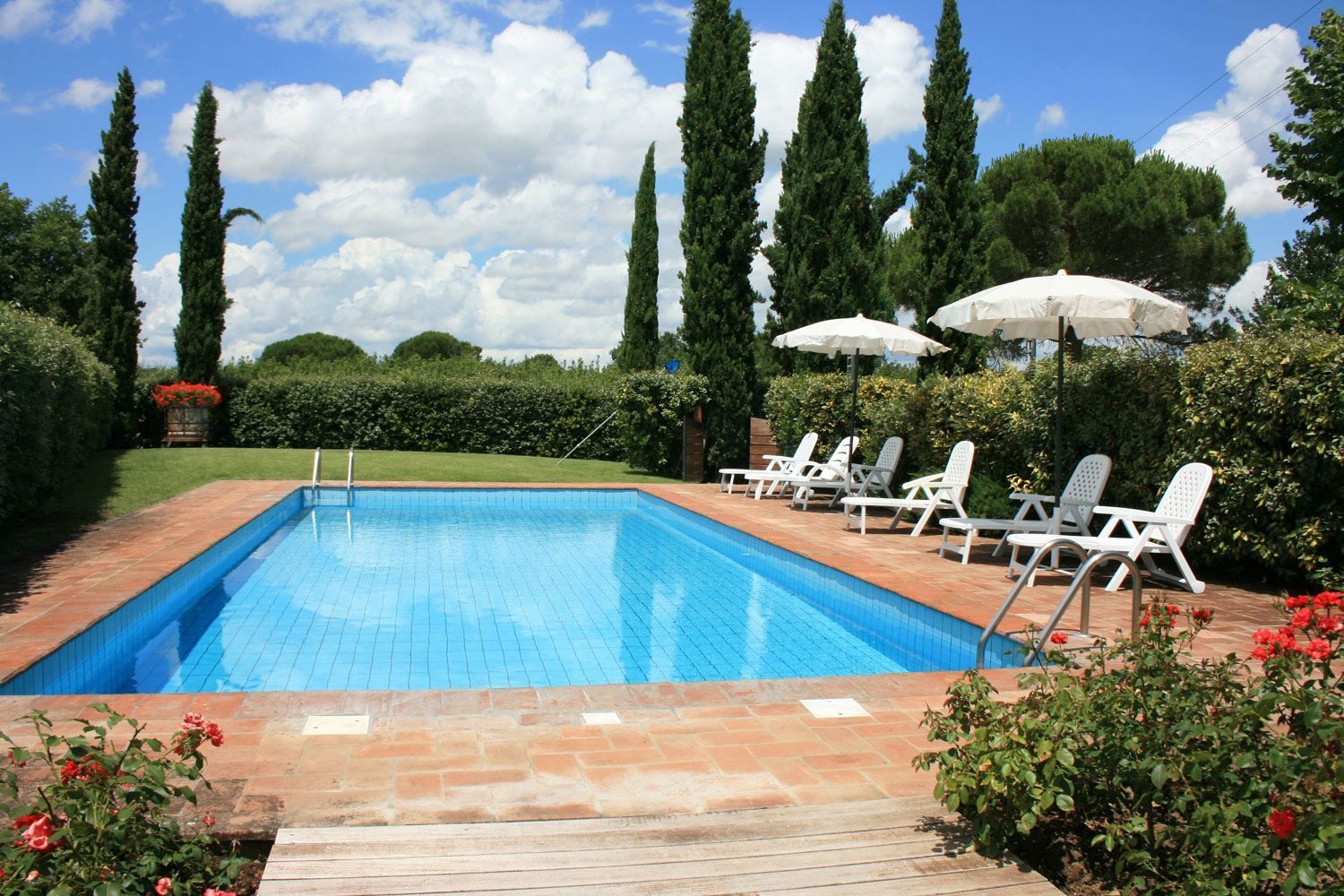 The swimming pool and the outdoor areas. At guests disposal and for their exclusive use the swimming pool (size 6x12 m. completely fenced), a table tennis and the bicycles. On the ground floor of the main house, in front of the pool, there are a bathroom with shower and a changing room. Each house has its own private garden equipped with outdoor furniture, barbecue and wood burning oven.