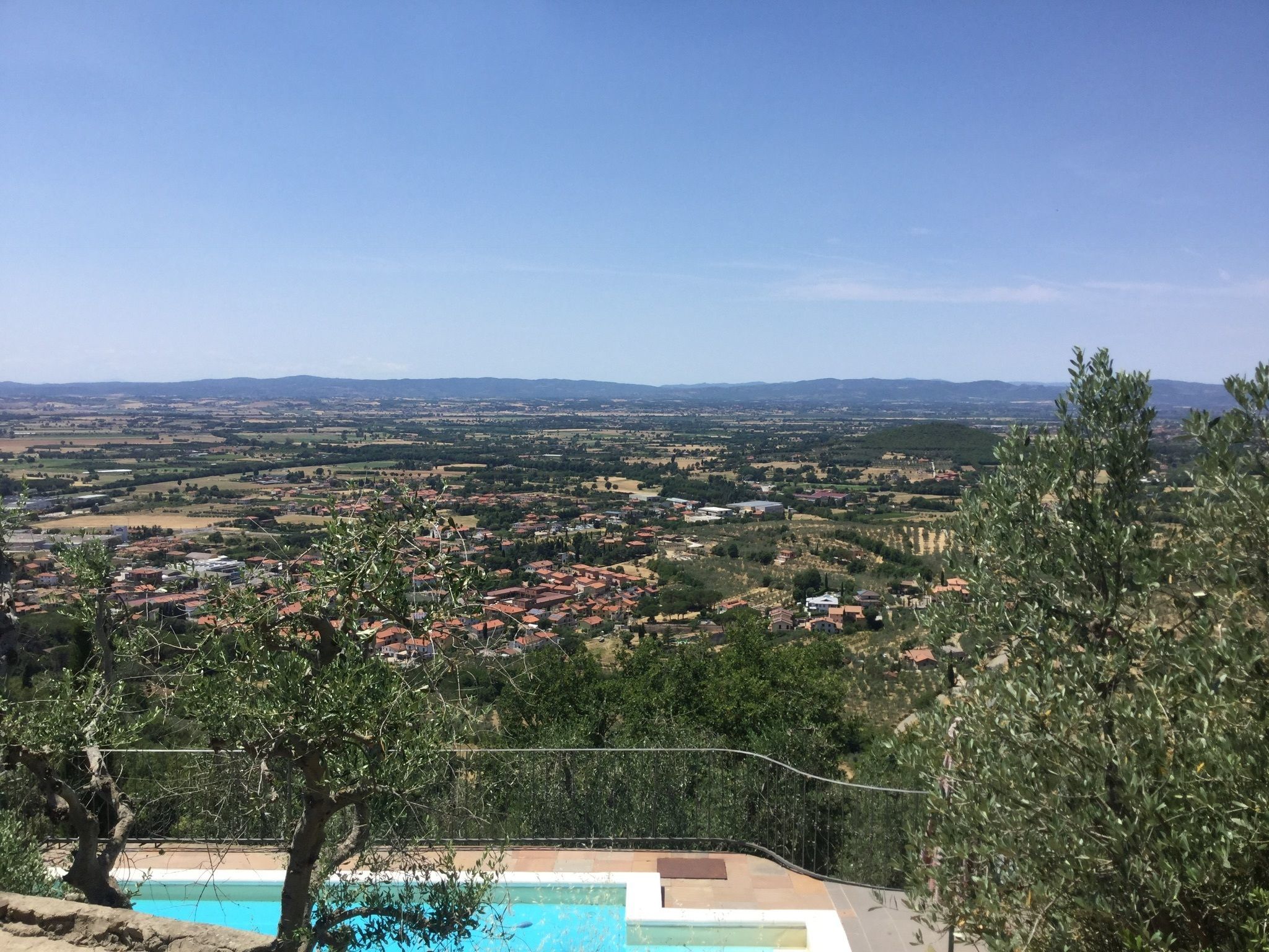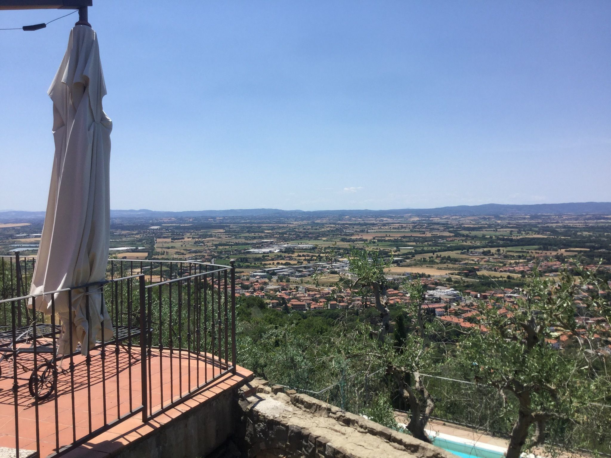 An endless view on Valdichiana Valley. Lovely small stone house on the slopes of a high hill covered with olives groves and woods, that thanks to its extremely panoramic position offers the possibility to admire a boundless view on the nearby village of Castiglion Fiorentino and on the whole underlying valley. The wide panoramic balcony in front of the house, equipped with outdoor furniture, allows to eat outside or simply to take long sun baths gazing at the charming landscape.