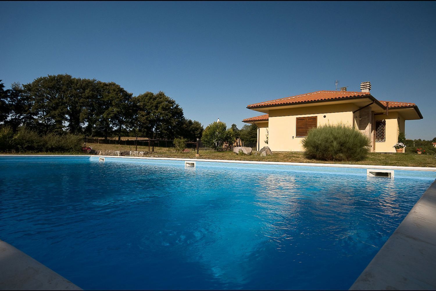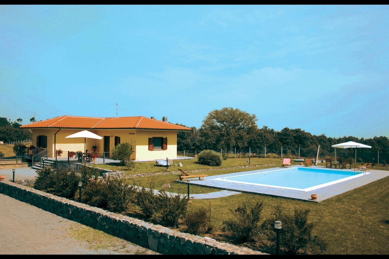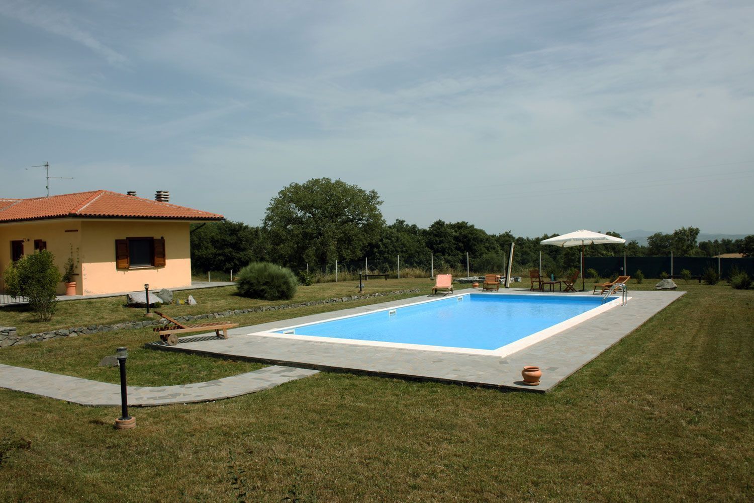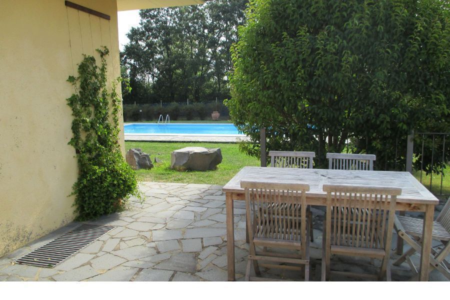 In front of the house, bathed in sunlight all day long, there is a beautiful swimming-pool (6x12m - depth 1.40m) equipped with sun-beds, deck-chairs and sun umbrellas. The house is surrounded by a large fenced garden with a 1km long path particularly suitable for running or walking, with benches where one can rest along the way and a small wood house for bird watching lovers.