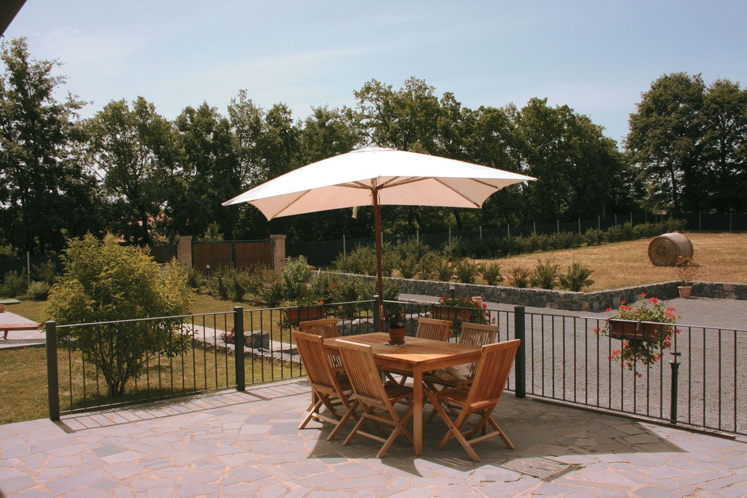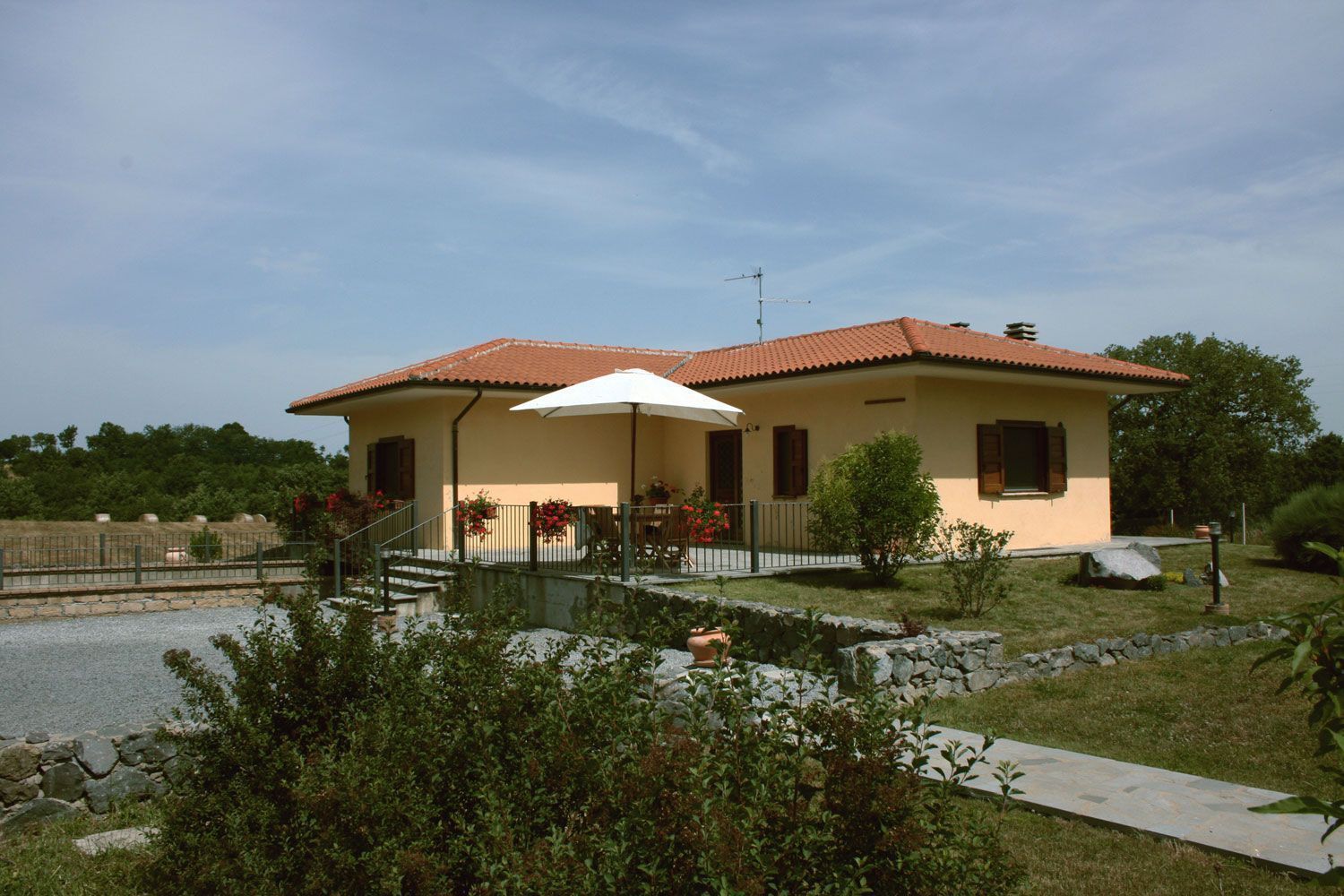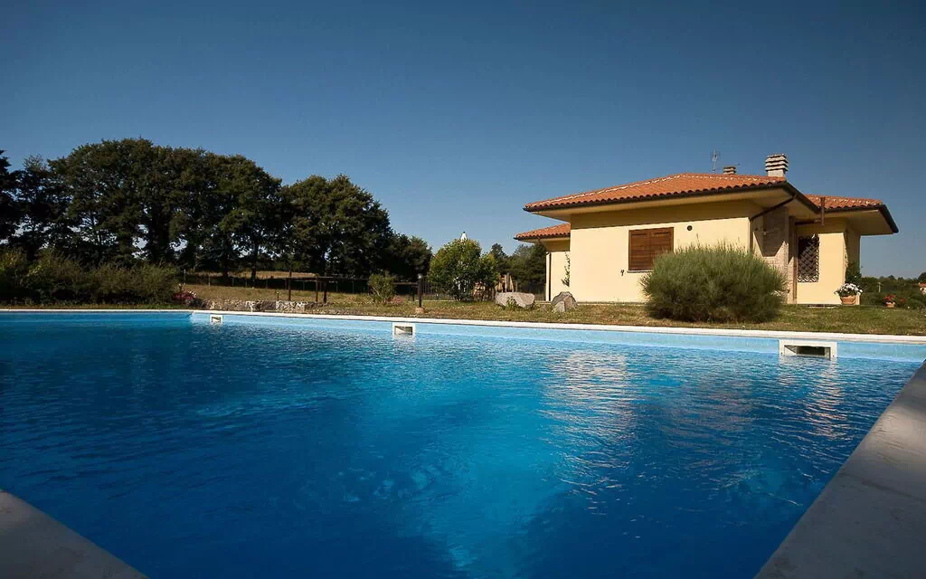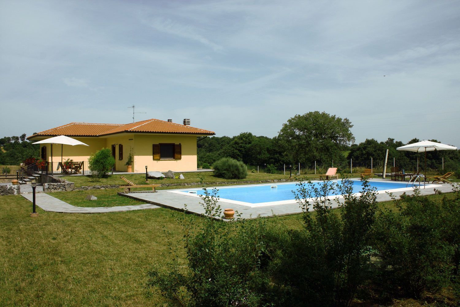 In front of the house, bathed in sunlight all day long, there is a beautiful swimming-pool (6x12m - depth 1.40m) equipped with sun-beds, deck-chairs and sun umbrellas. The house is surrounded by a large fenced garden with a 1km long path particularly suitable for running or walking, with benches where one can rest along the way and a small wood house for bird watching lovers.