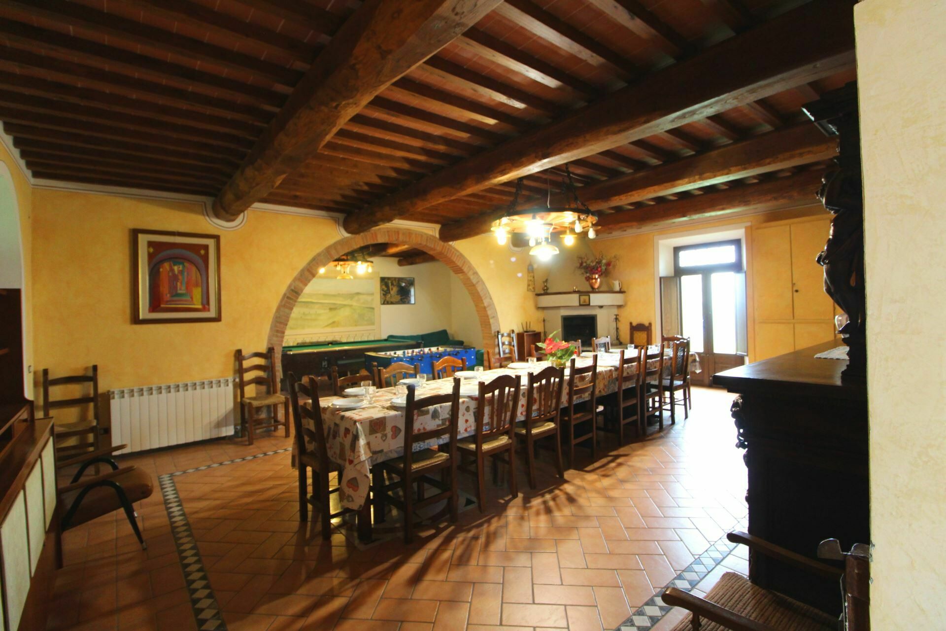 GROUND FLOOR: large living-dining room with fireplace, kitchen and bathroom with shower, room with billiard and table-football, two double bedrooms each one with en suite bathroom with shower. In the annex next to the pool, there is a room with washing machine.