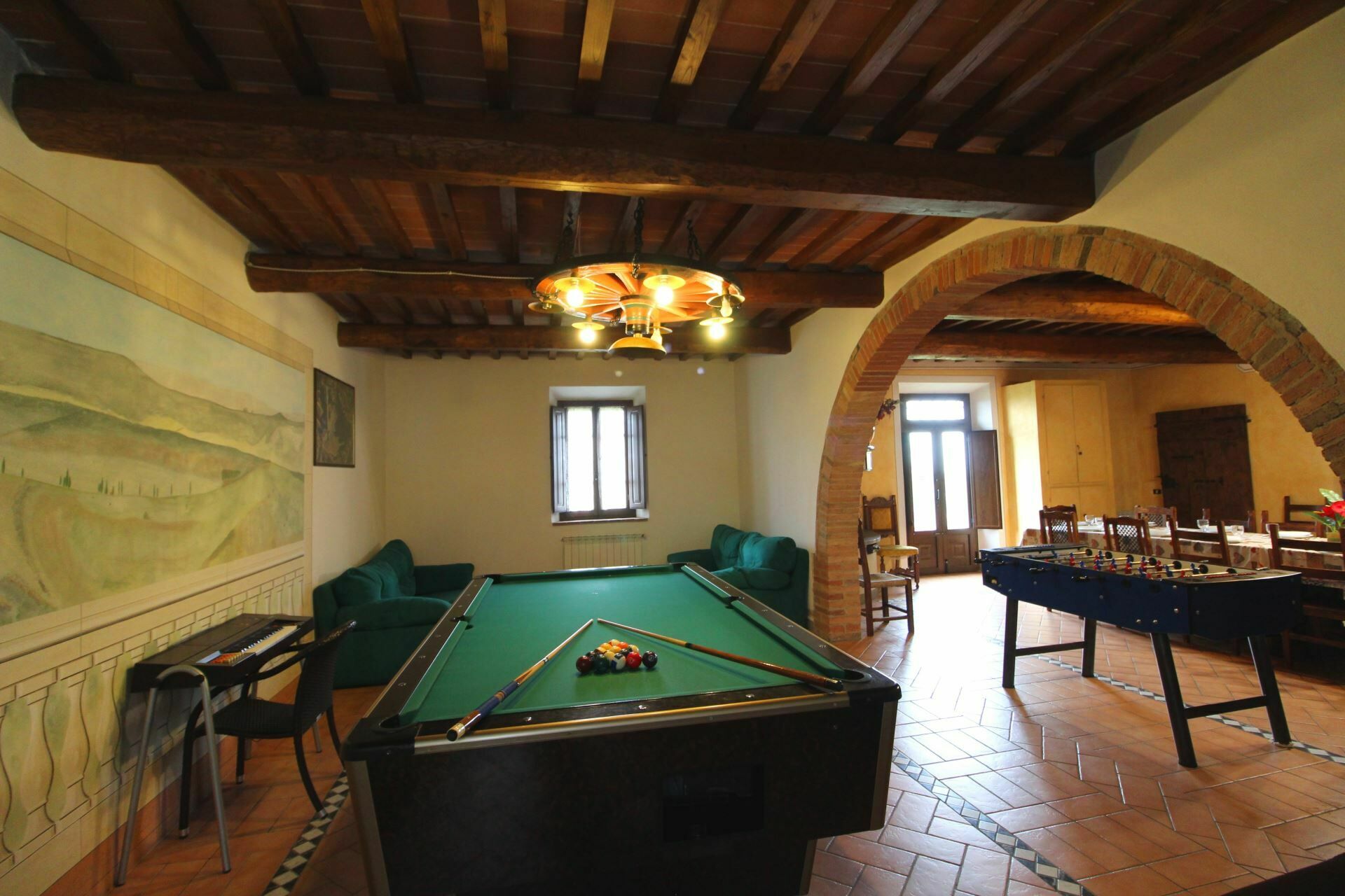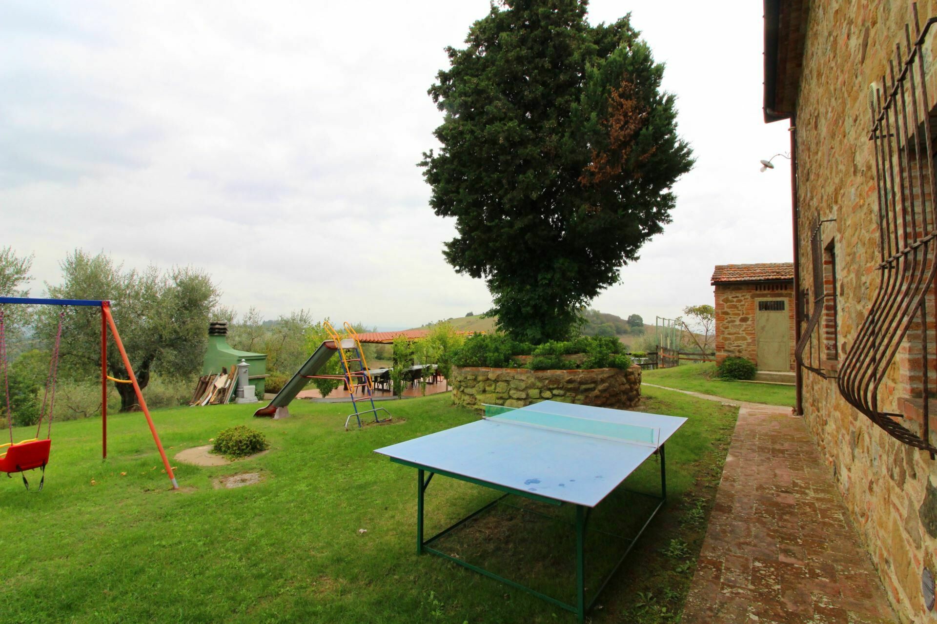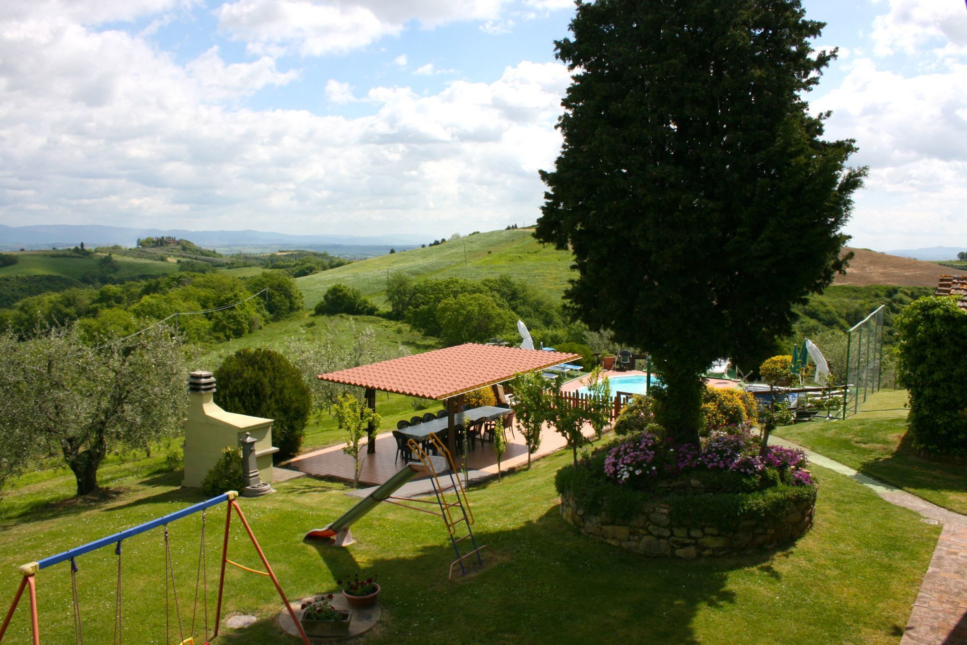 Casa Bella is a typical stone villa situated on the top of a hill and offers a 360° view of the green hills of the Senese countryside. To give you an idea of how exceptional the view from Casa Bella is, we can tell you that we have often organised painting courses here. Looking around you will find inspiration in the landscape, which in itself is something to frame. Families with children as well as groups of friends have enjoyed their holidays in this villa, fun for young and old is guaranteed. The warm colours of the walls and the simple furnishings make the house warm and welcoming.