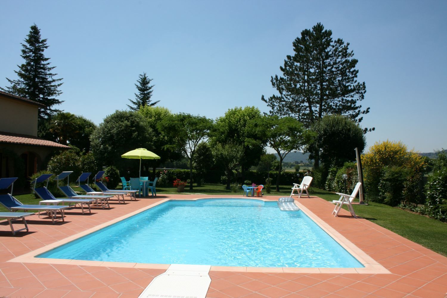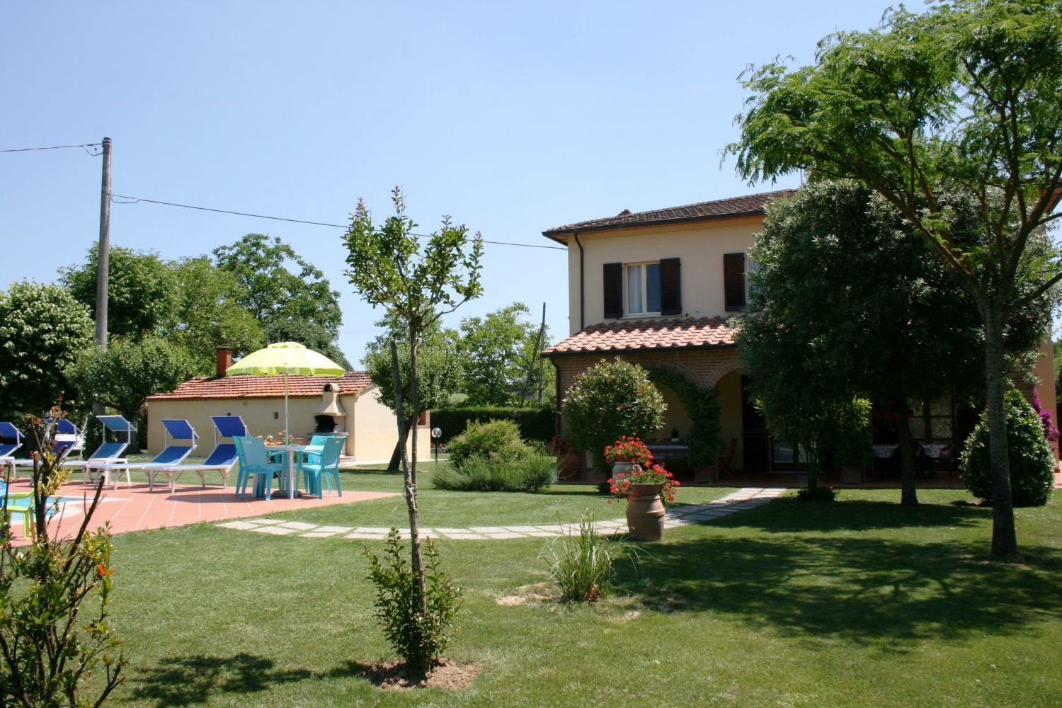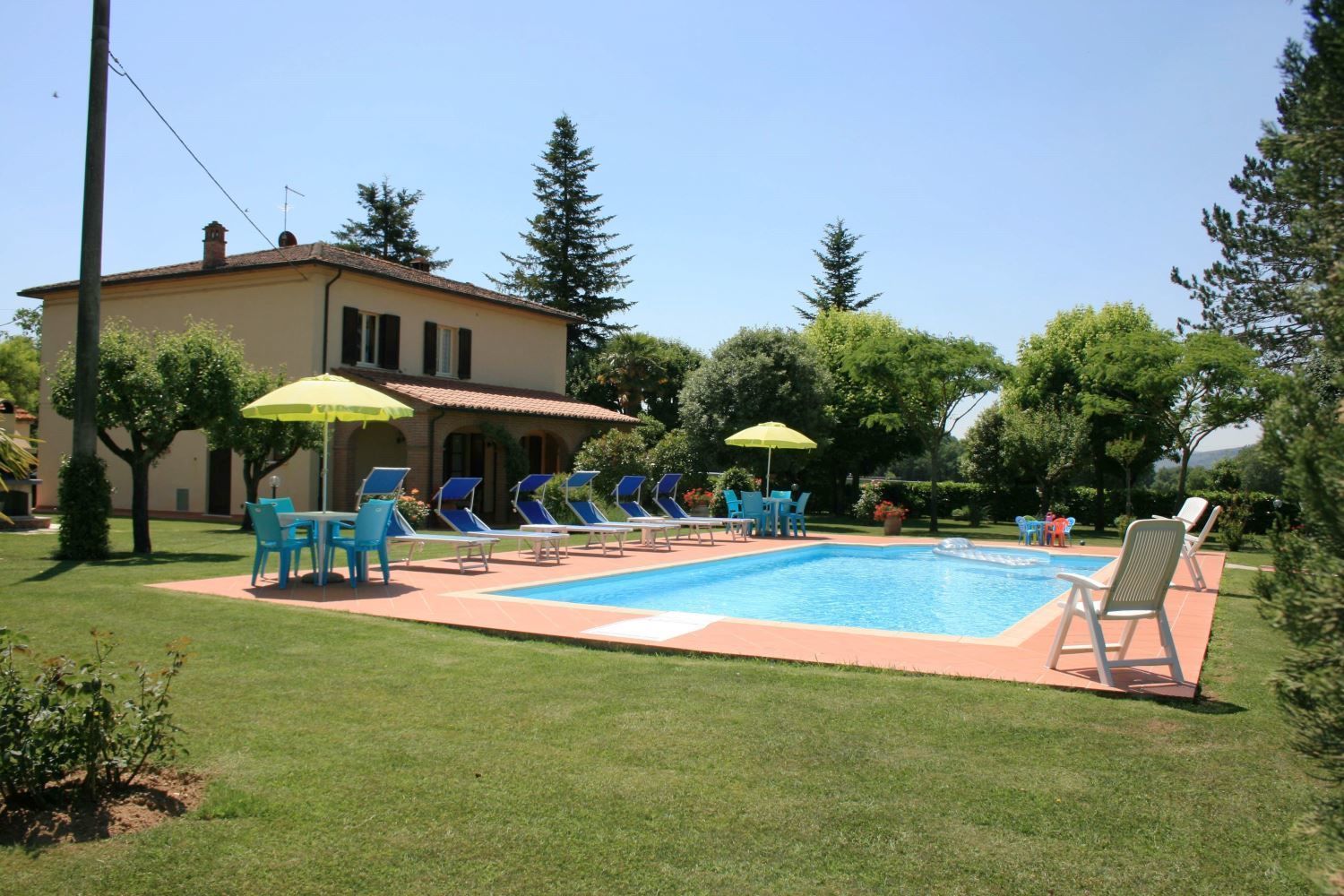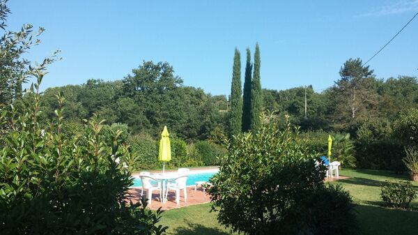 Green, enclosed garden, pool in a sunny position. All around the house a wide green space entirely fenced and in a sunny position a nice swimming pool (5 x 10 m., depth 1,20-1,65 m.). At full guest's disposal the barbecue and the laundry. The house is comfortably furnished and will be a good starting point to visits the most important art cities of Tuscany and central Italy.