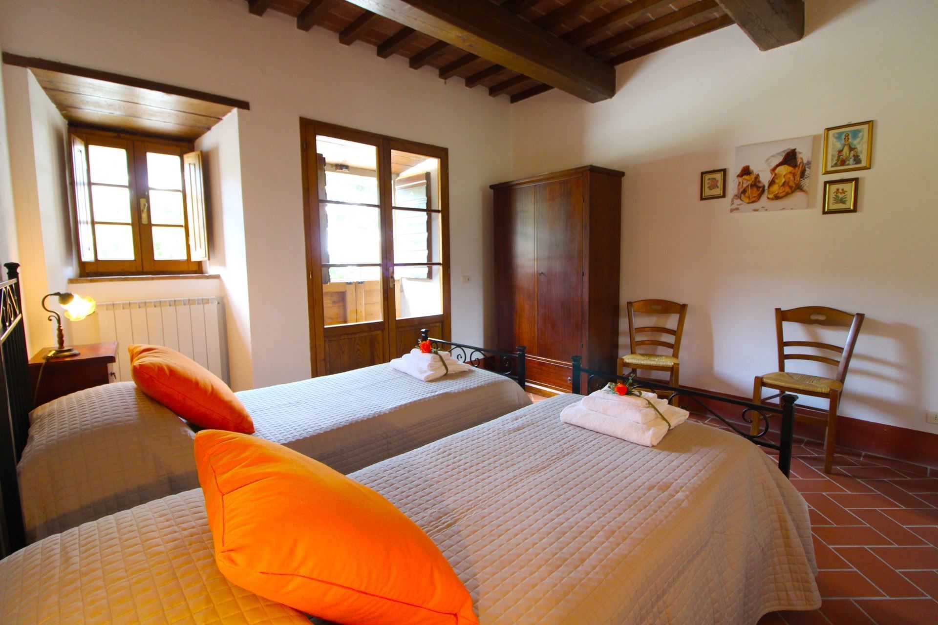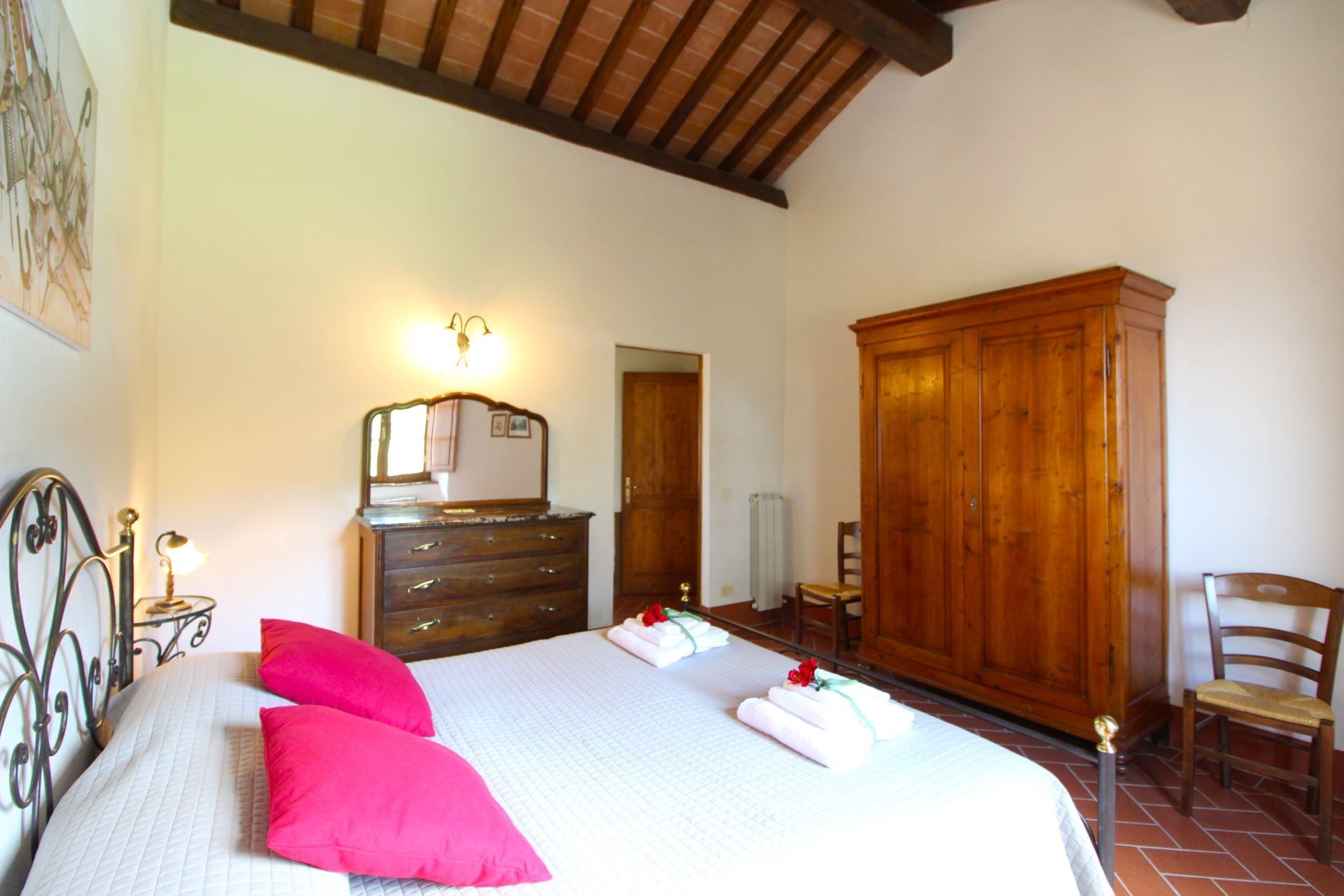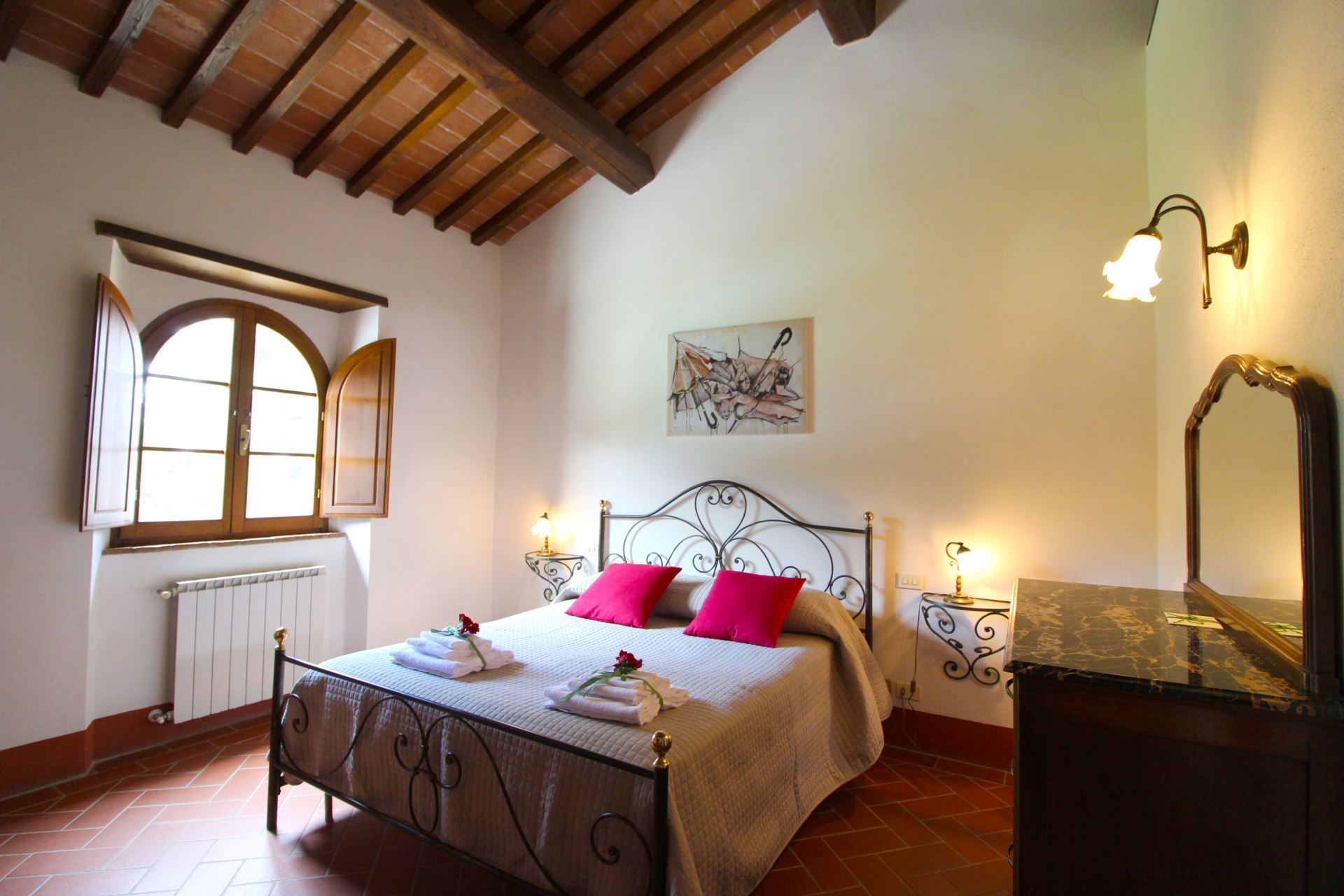 The area, which has a rich artistic patrimony is sought after by people from all over the world. Today the city of Cortona, which preserves intact historical testimonies of its ancient Etruscan origins, has facilities of every kind and all over the year there are several famous cultural and folk initiatives to cheer the tourists stay. The hermitage Francescano delle Celle which is a place of peace and quietness founded in the 12th century by followers of Saint Francis of Assisi, is a stone throw from the house.