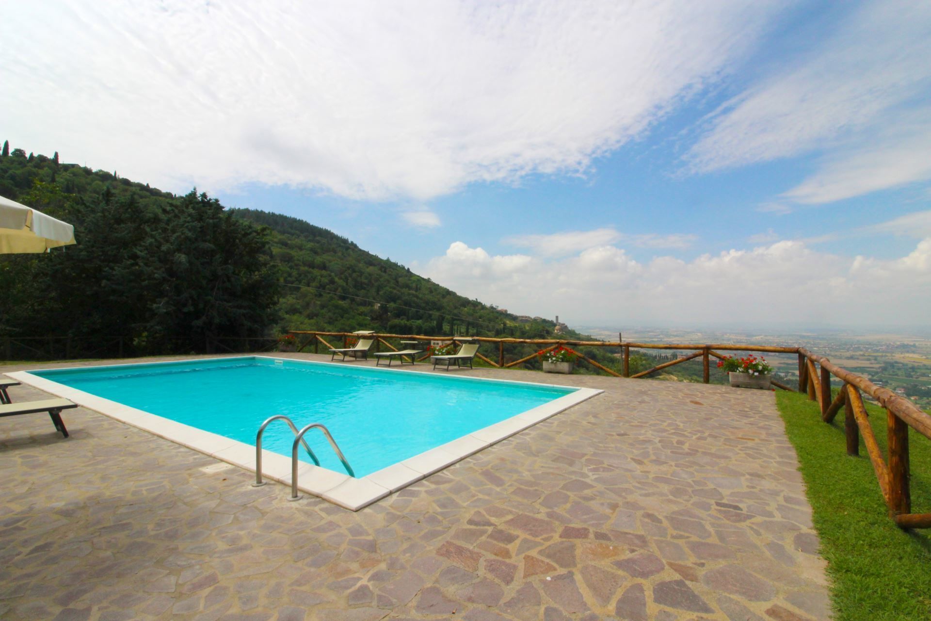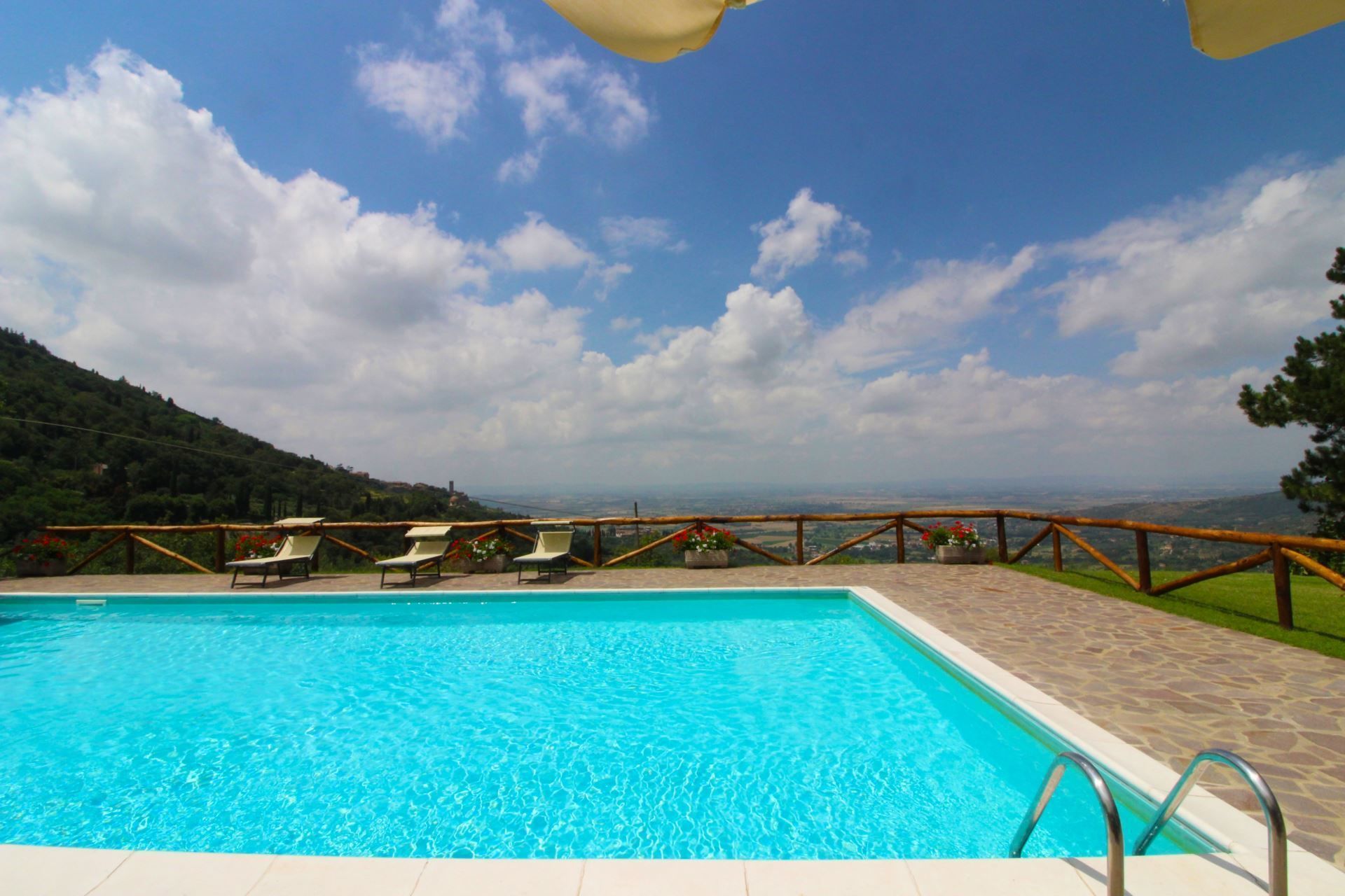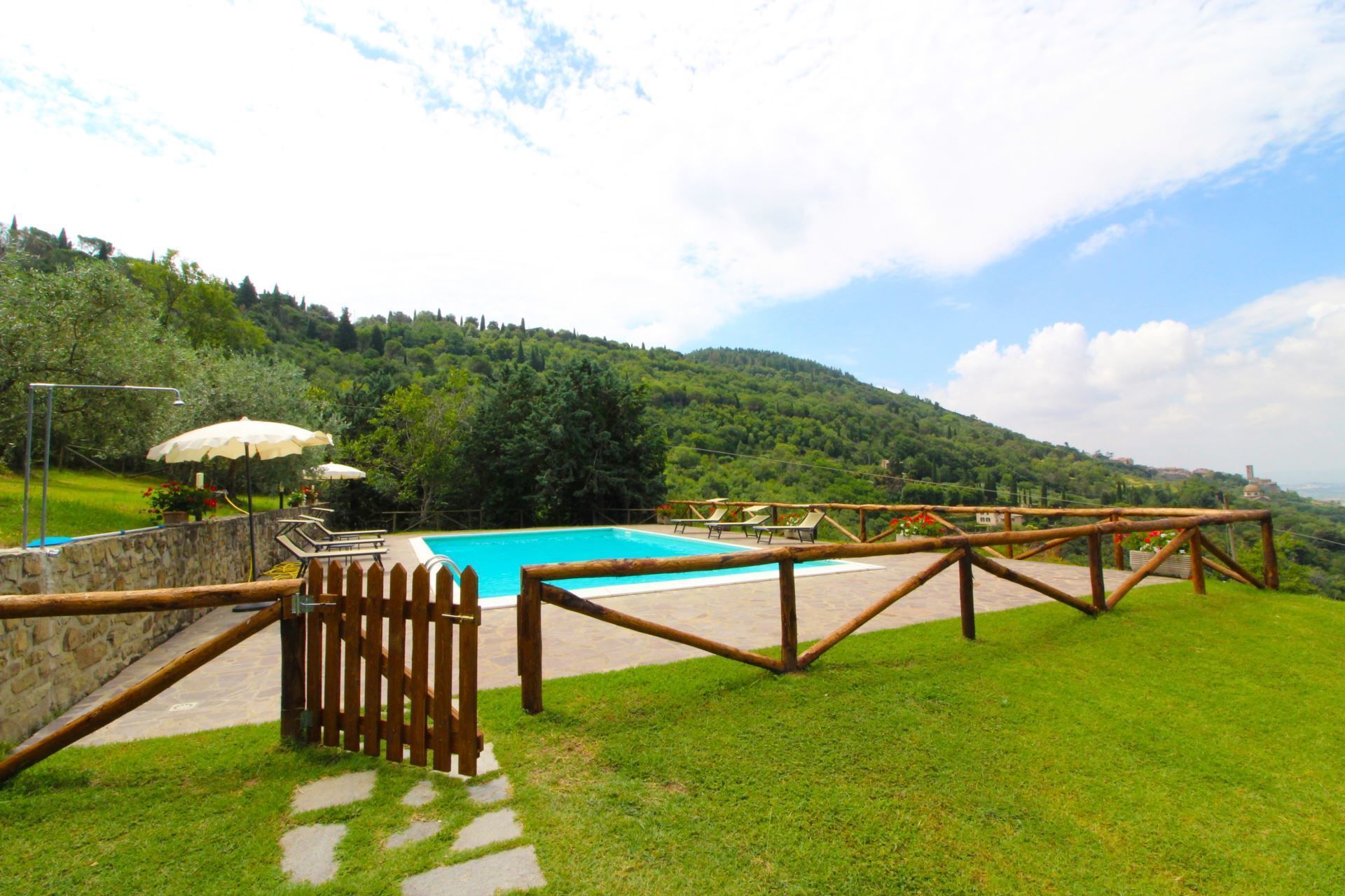 Panoramic position close to Cortona, which is within walking distance. Le Celle is beautiful villa set in a panoramic position giving a superb view over the whole of Valdichiana and the nearby town of Cortona, reachable with a short walk approx. 1 km.