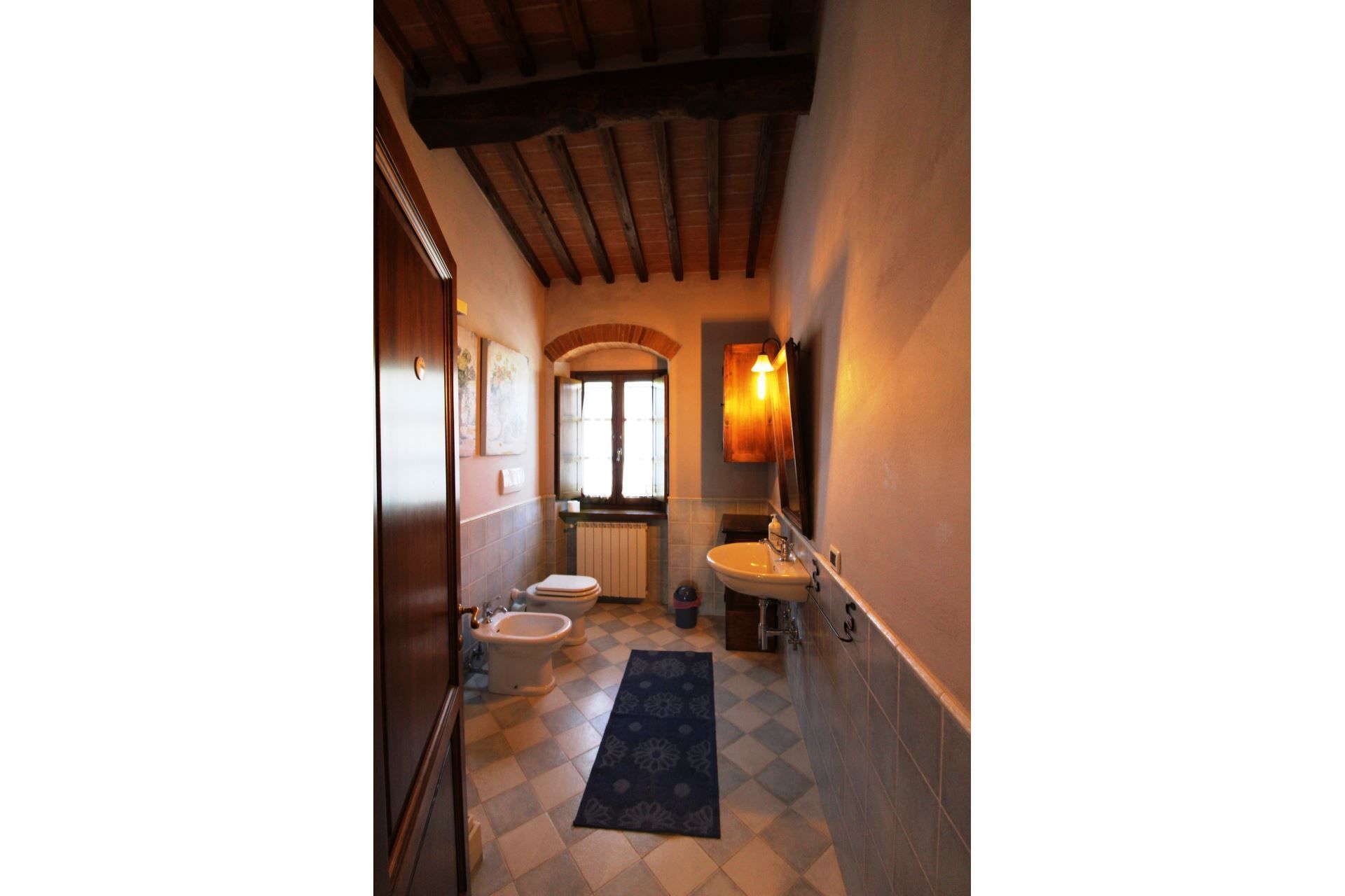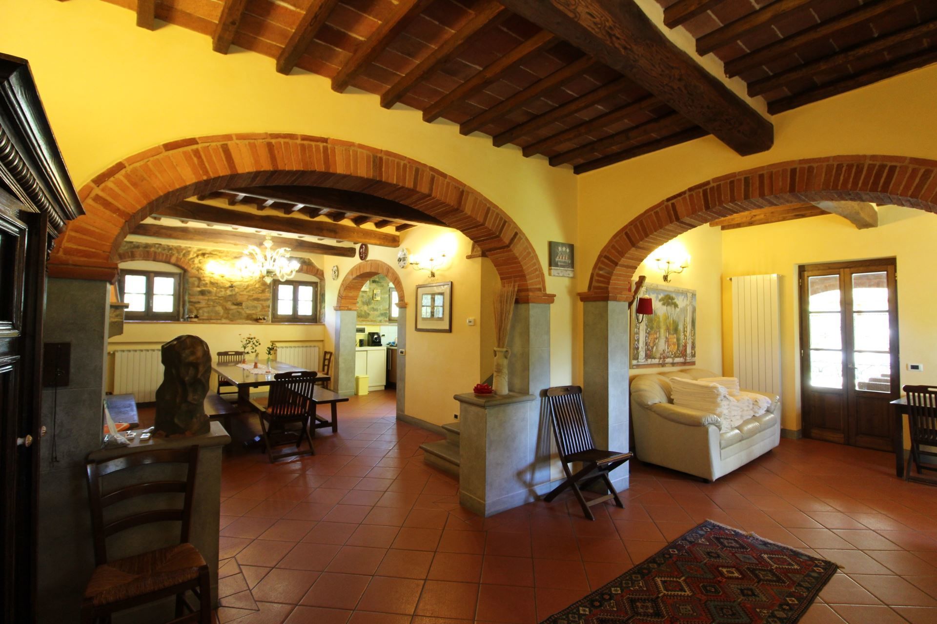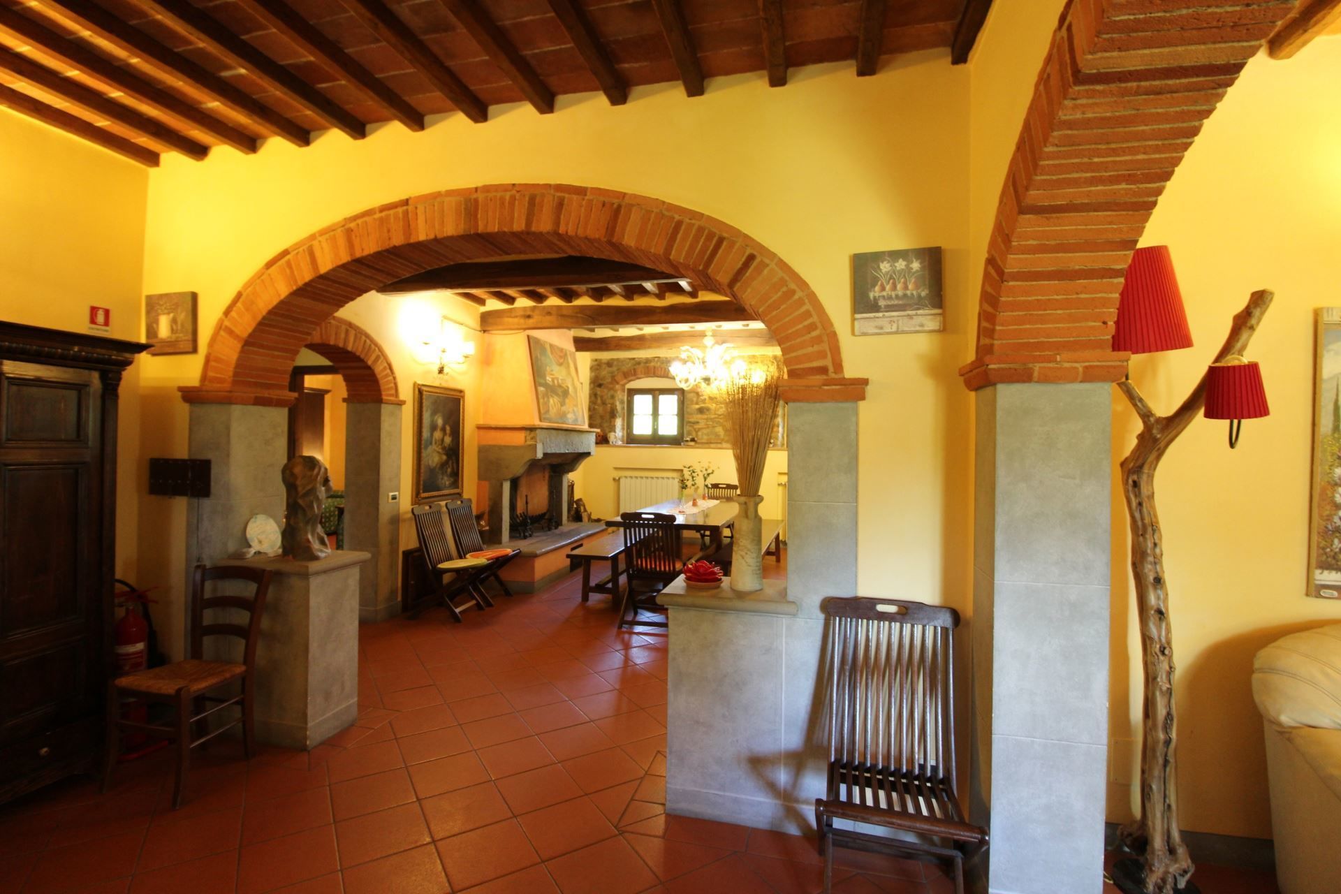 The villa is located at the foot of the first wooded hills, which mark the border between Valdichiana and Valdarno, from here you can make even daily excursions, towards the two valleys, dotted with small villages nestled in the Tuscan countryside. In Monte San Savino, which is just a few kilometres away, it will be pleasant to spend evenings out, dining in typical restaurants or enjoying an aperitif sitting at tables in the colourful cobbled streets.