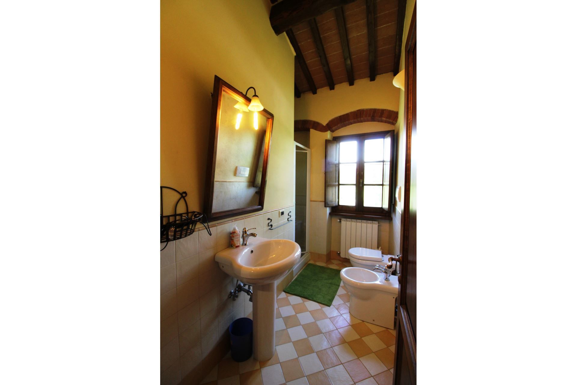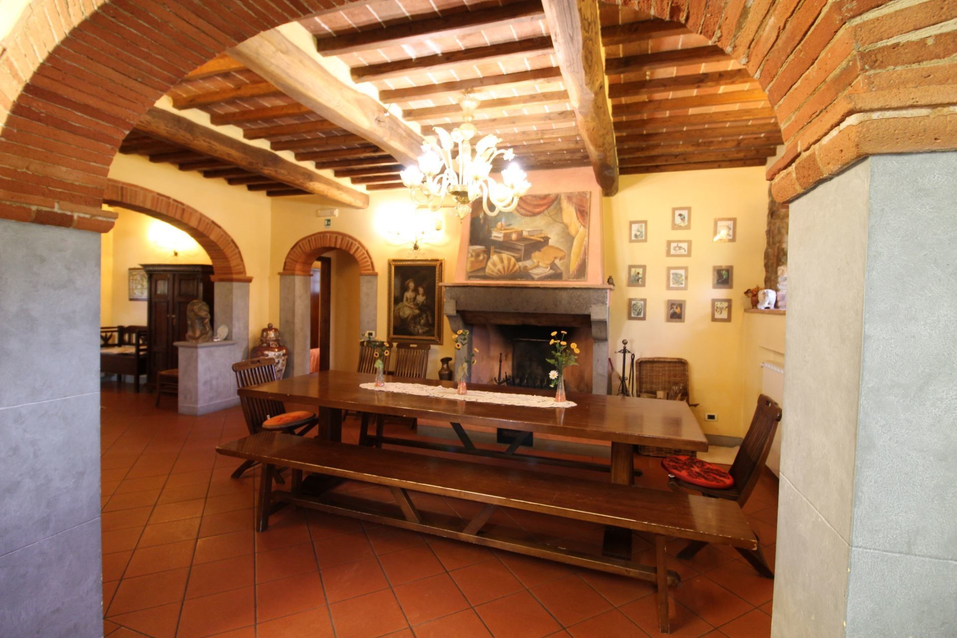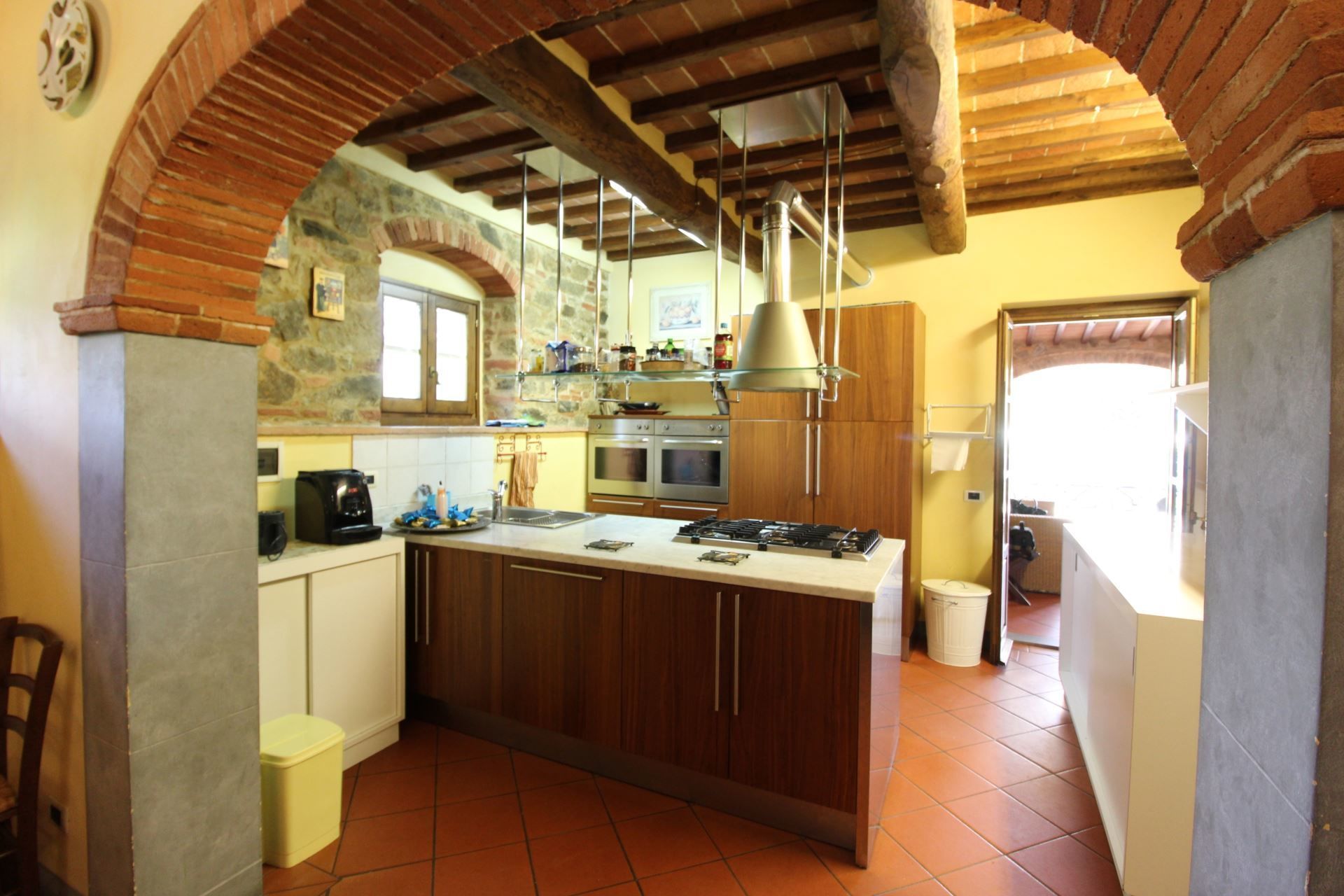 The villa is located at the foot of the first wooded hills, which mark the border between Valdichiana and Valdarno, from here you can make even daily excursions, towards the two valleys, dotted with small villages nestled in the Tuscan countryside. In Monte San Savino, which is just a few kilometres away, it will be pleasant to spend evenings out, dining in typical restaurants or enjoying an aperitif sitting at tables in the colourful cobbled streets.