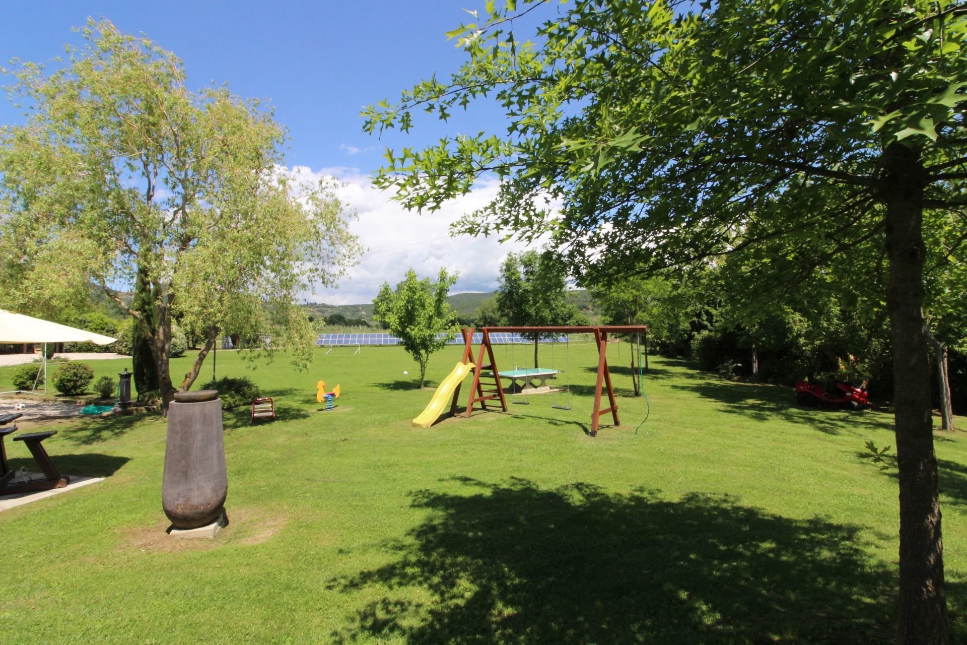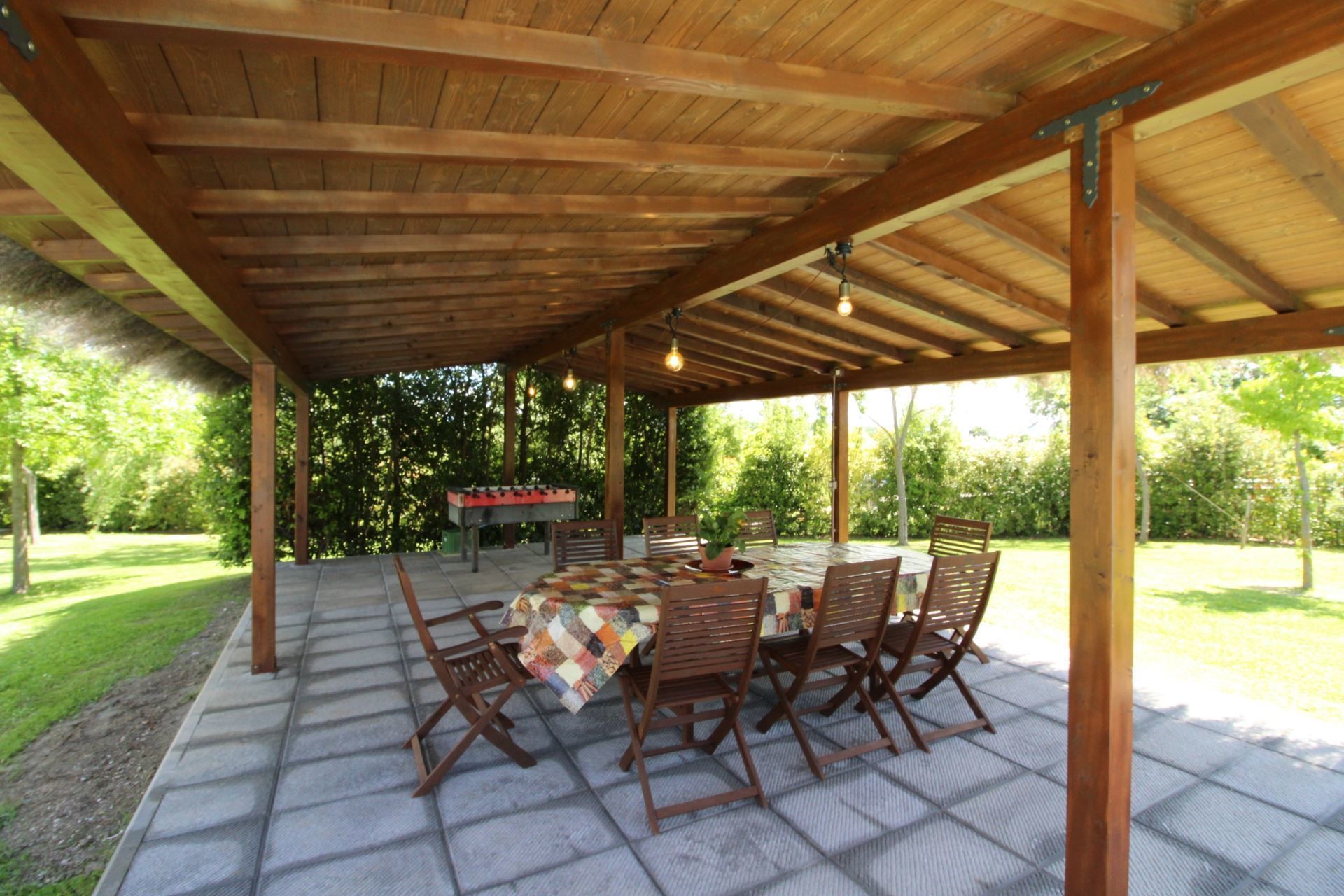 La Quiete, in our opinion, is perfectly suited for your holidays with children, or in the company of large groups of friends. Around the house you will find a large green area equipped with outdoor furniture, barbecue, table tennis, table football, children's games, volleyball court and five-a-side football pitch. A splendid swimming pool (size 6x12 m, depth 1.10-2.00 m - open from 01st May to 30th September) will brighten your summer days, and the large furnished portico outside will be the setting for your breakfasts, lunches and dinners in the open air.