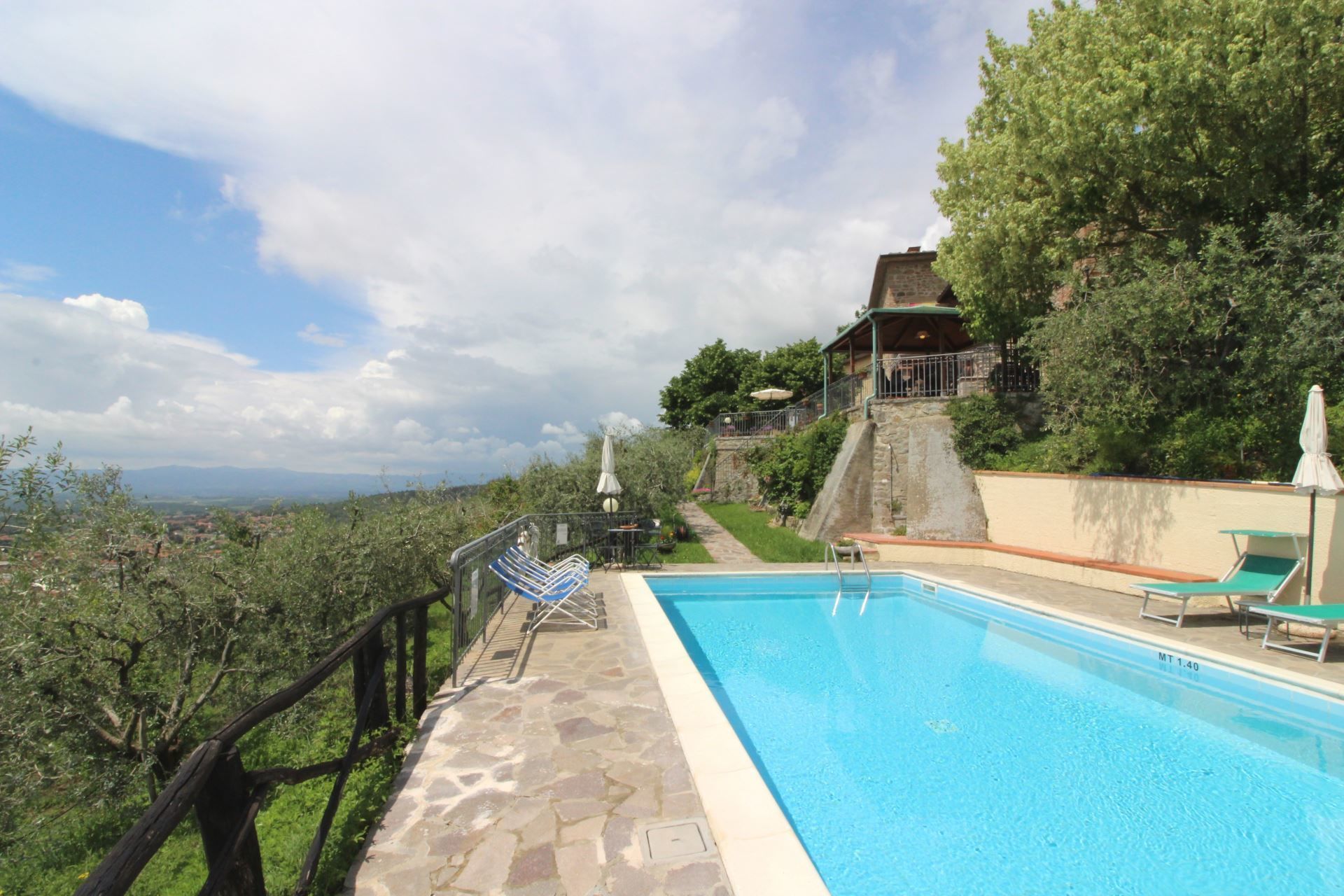 Maximum relax in the beautiful private swimming pool (mt. 10x4,5, depth mt. 1,40, completely fenced - open from 01st May to 30th September ) with solarium equipped with deckchairs, tables and sun umbrellas and in the gazebo overlooking the valley below. Where to spend relaxing days to read, eat outside or just to enjoy the landscape that is lost at a glance. Families will not fail to appreciate the children's play area and the tennis table; the little house with barbecue, wood oven and sink is ideal if you enjoy cooking and eating outdoors.