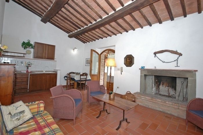 1st floor: living-room with dining area, fireplace, double sofa-bed and kitchen corner (oven, fridge 140 liters), double bedroom, bathroom with shower.