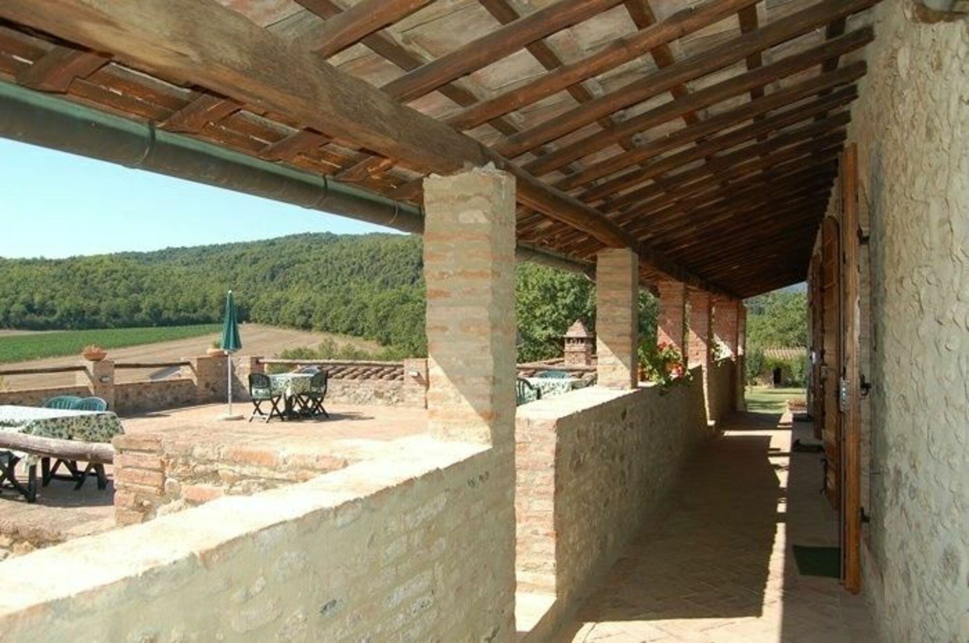 Large solarium terrace (80 square meters) with furnished area providing table, chairs and sun-umbrella.