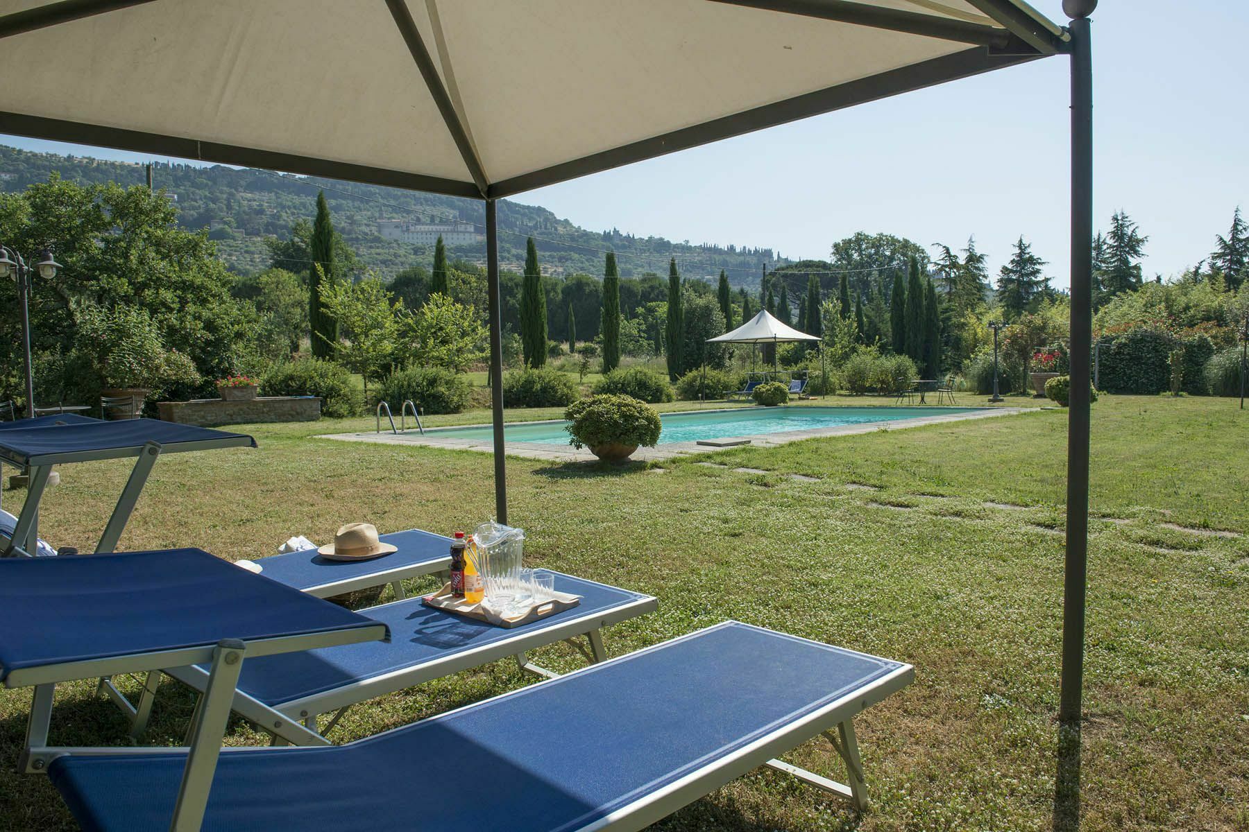 Beautiful villa with private pool situated on a large park at the foot of the hills of Cortona, a lovely town dating back to the Etruscan times. The villa dates back to the 16th century and offers comfortable interiors furnished with some antique pieces. The outside areas are very large and provide a nice park with a spacious solarium area (near the pool) and some charming corners shaded by century-old tress.