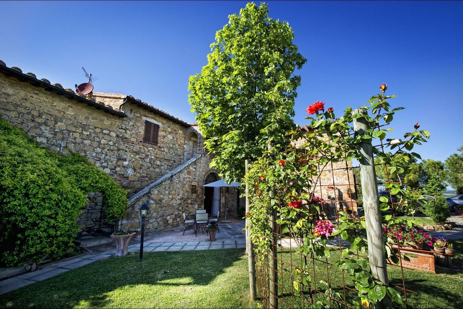 Located in the province of Siena, next to the village of Vitaleta, on the road between