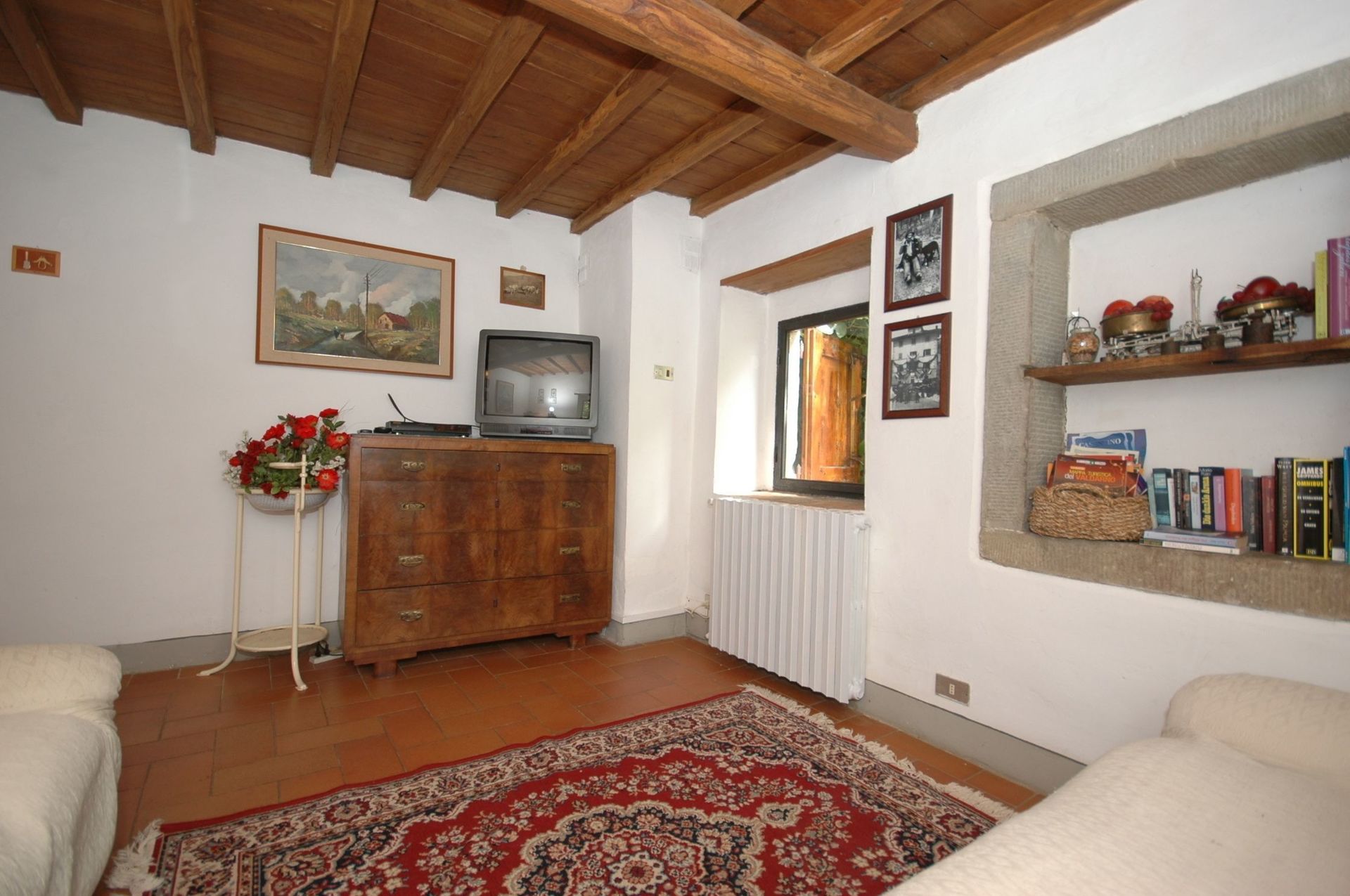 Distances: groceries 2,5 km away (walking distance via a small path), Terranuova Bracciolini with general stores 6 km away, railway station (trains to Florence and Arezzo) 8,5 km, Arezzo 30 km away, Florence (airport) 56 km, Siena approx. 60 km away, San Gimignano 98 km, Perugia 119 km away, Pisa 153 km, Rome 256 km away.