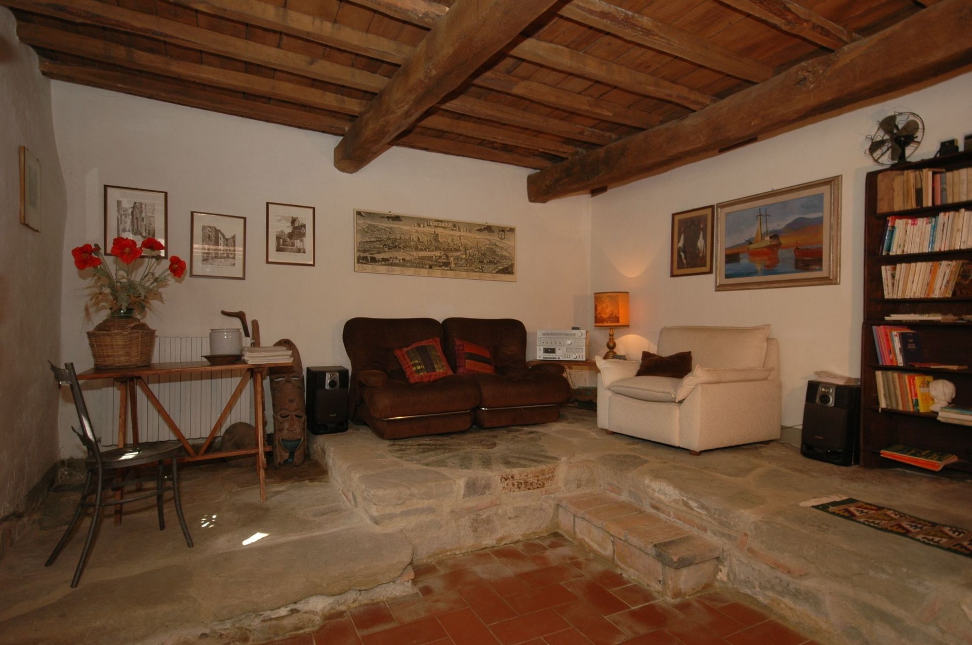 Ground floor: small living-room (hi-fi) created by restoring the former mill area.