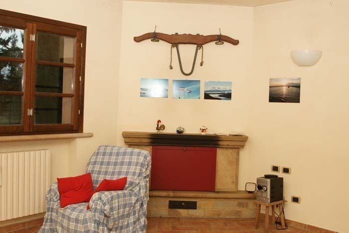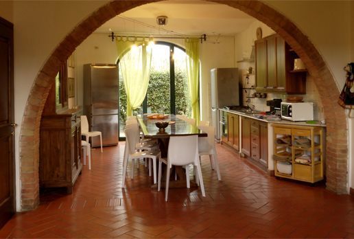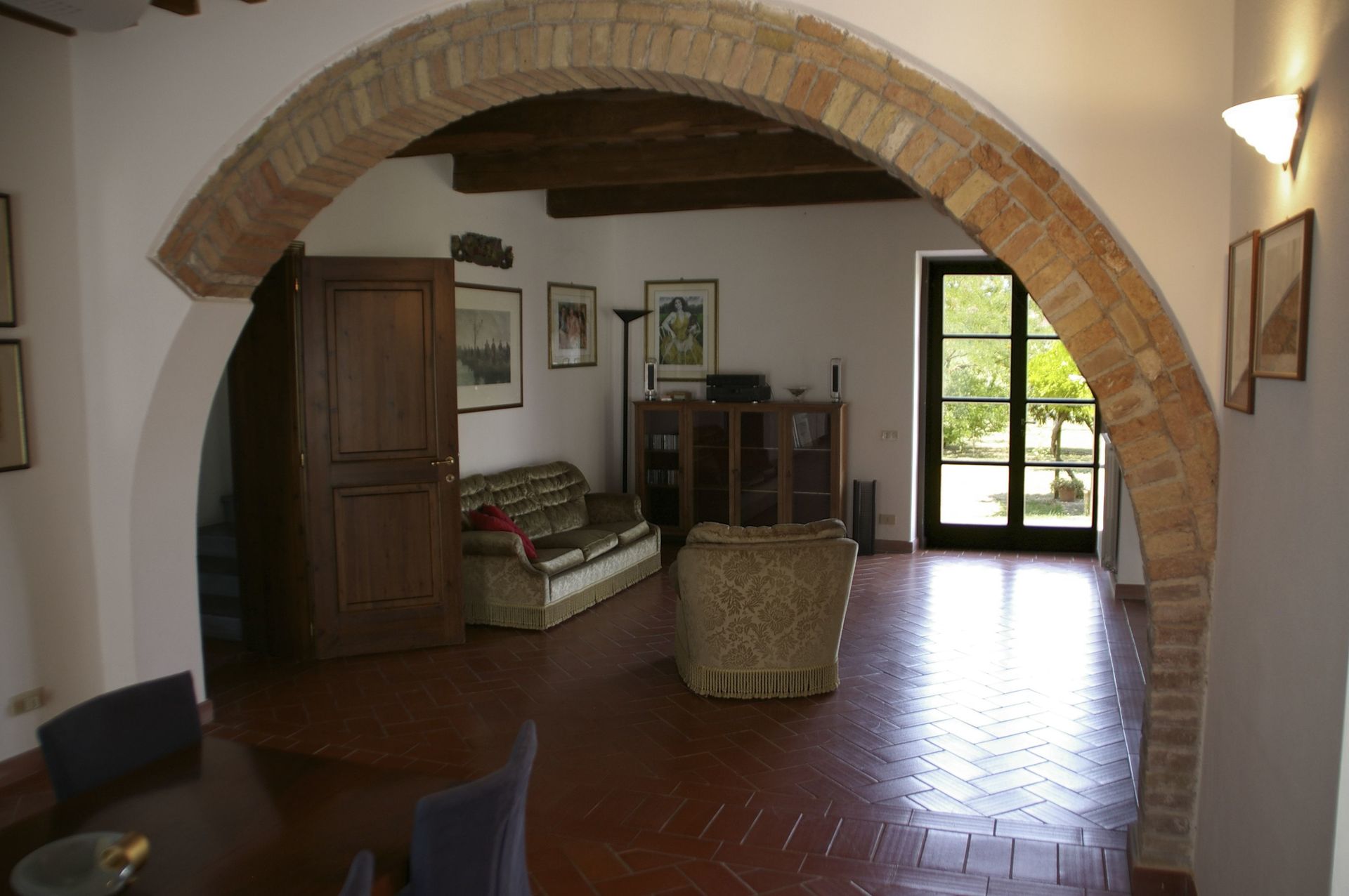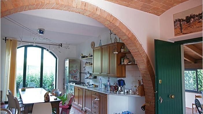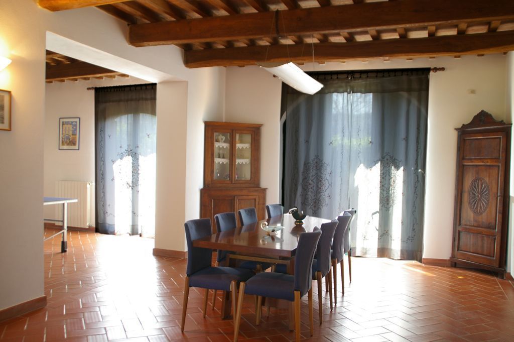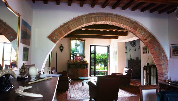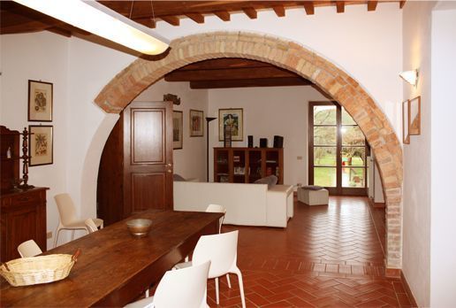 The large living room has characteristic ceilings with wooden beams, typical stone arches of red bricks and Tuscany tiled floors and it has a Table Tennis.