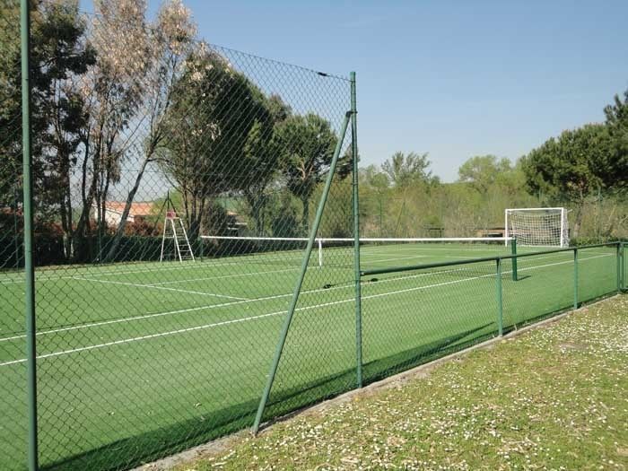 Standard Tennis Court with synthetic clay (with rackets and balls).