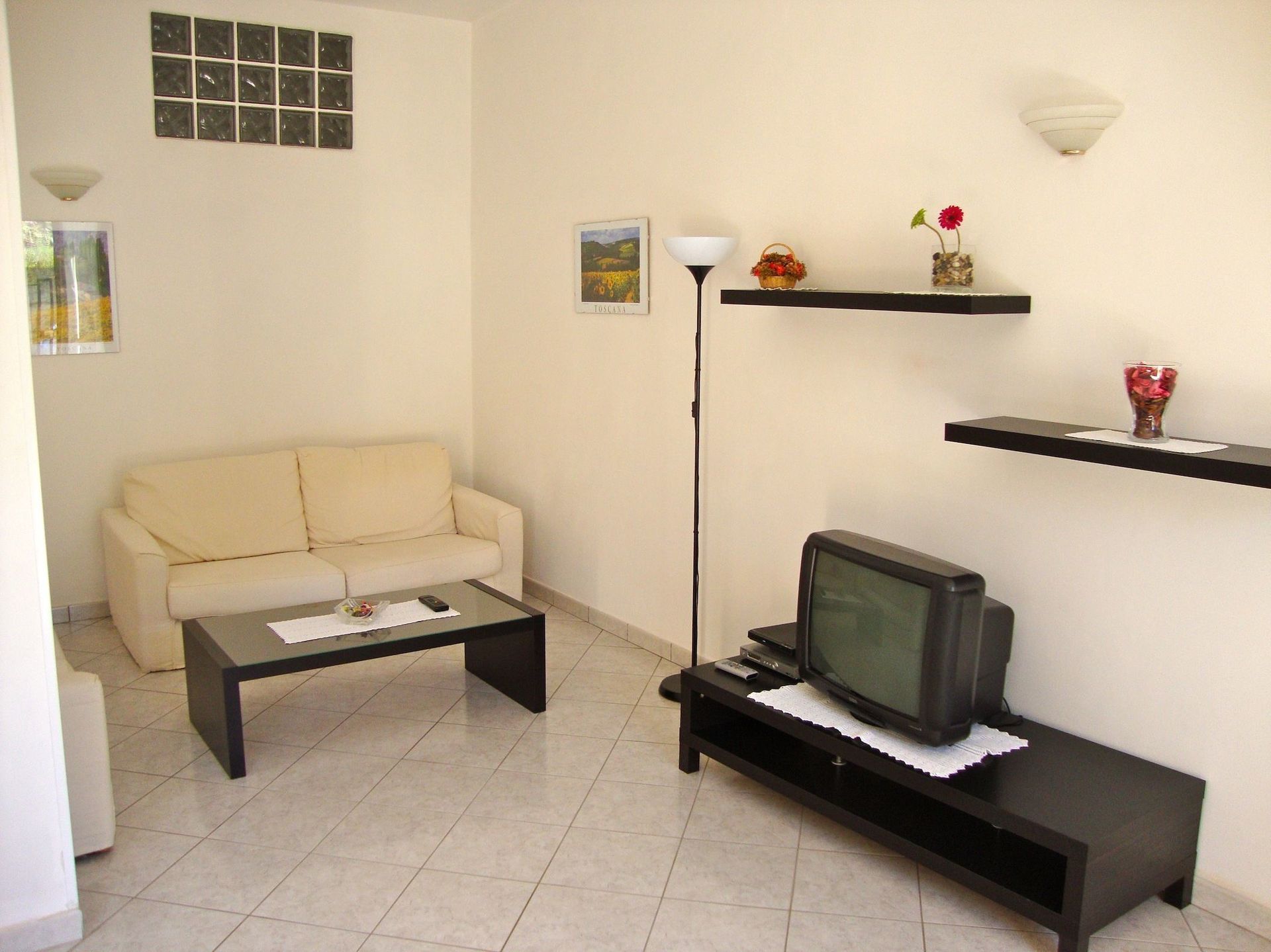 The apartment has a spacious living room with 2 sofas, TV with DVD player and digital terrestrial.