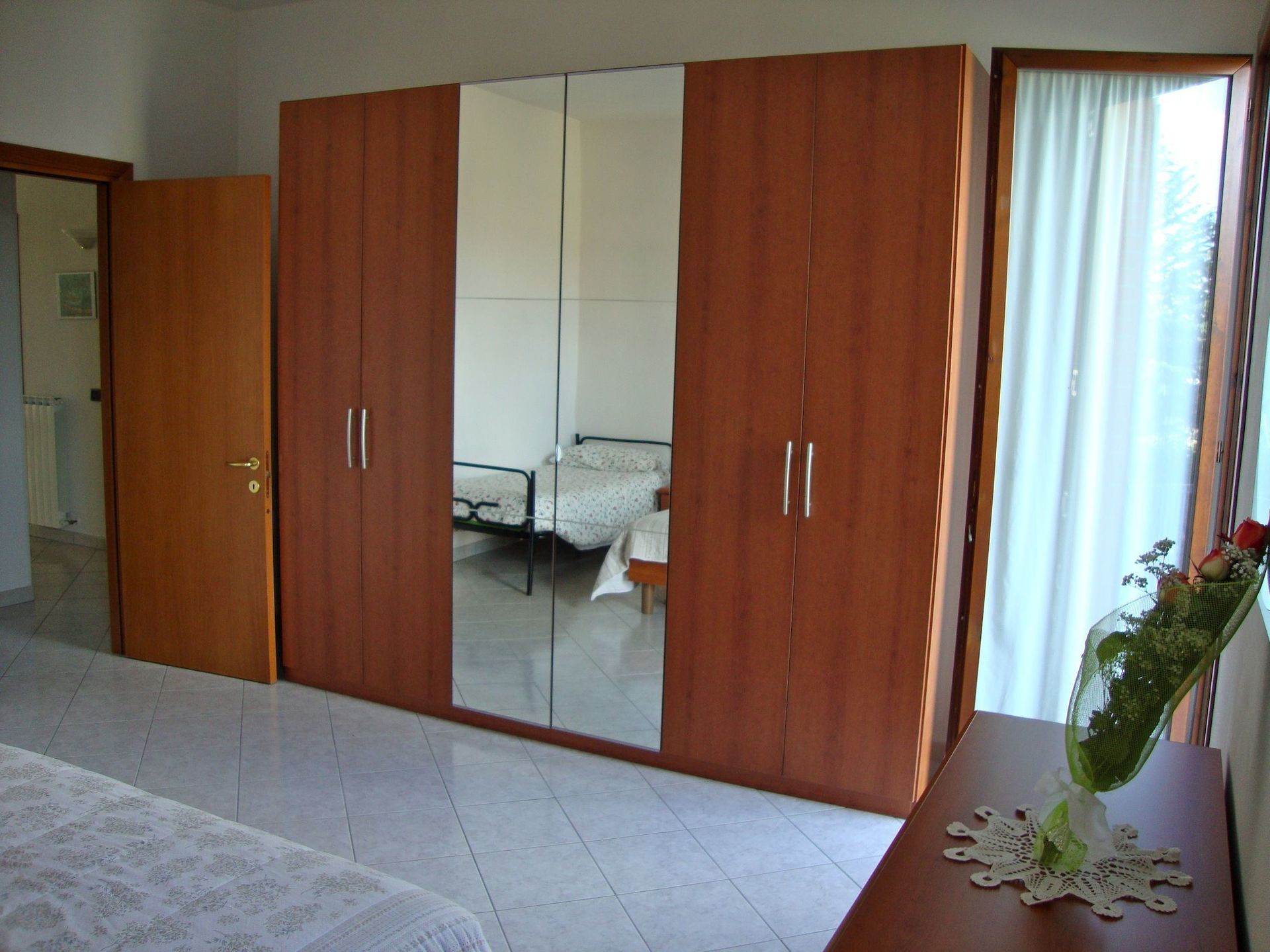 There are two rooms: the largest with a double bed and one single, the other with two single beds that can become a bed (when they have a double mattress).