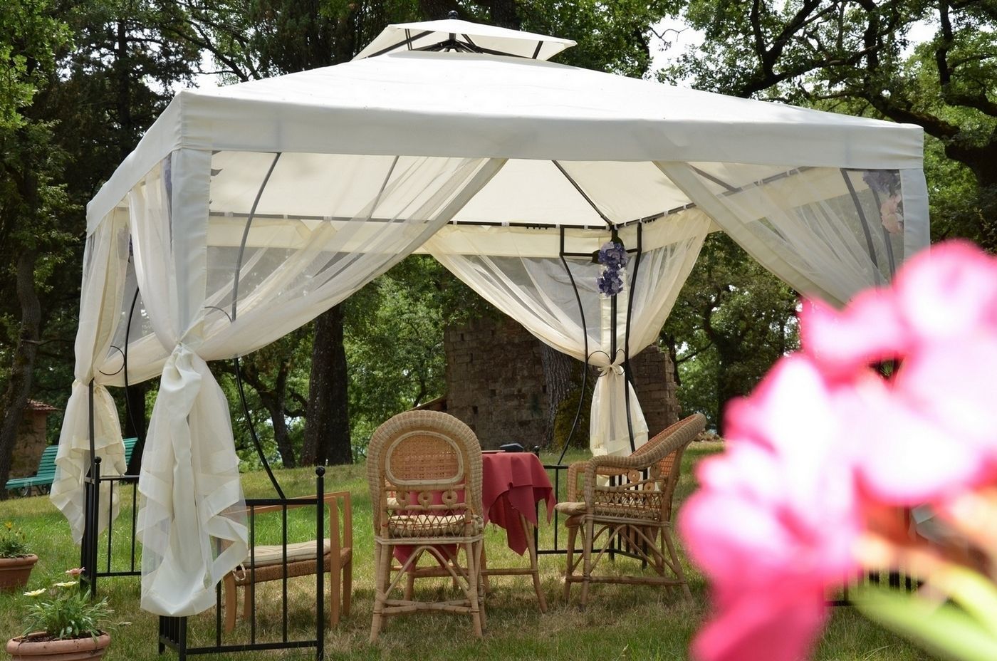 The place is ideal for a quiet holiday, relaxing and sober. Car parks and games for children. Large park of pine trees, cypresses, cedars, oaks and century old oak trees where the seasons are appropriate, and perhaps some mushrooms truffles.